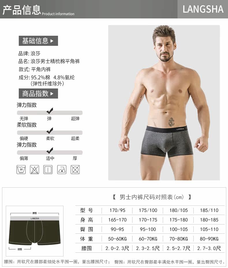 浪莎 Трусы, шорты, нижнее белье, хлопковые дышащие тонкие штаны