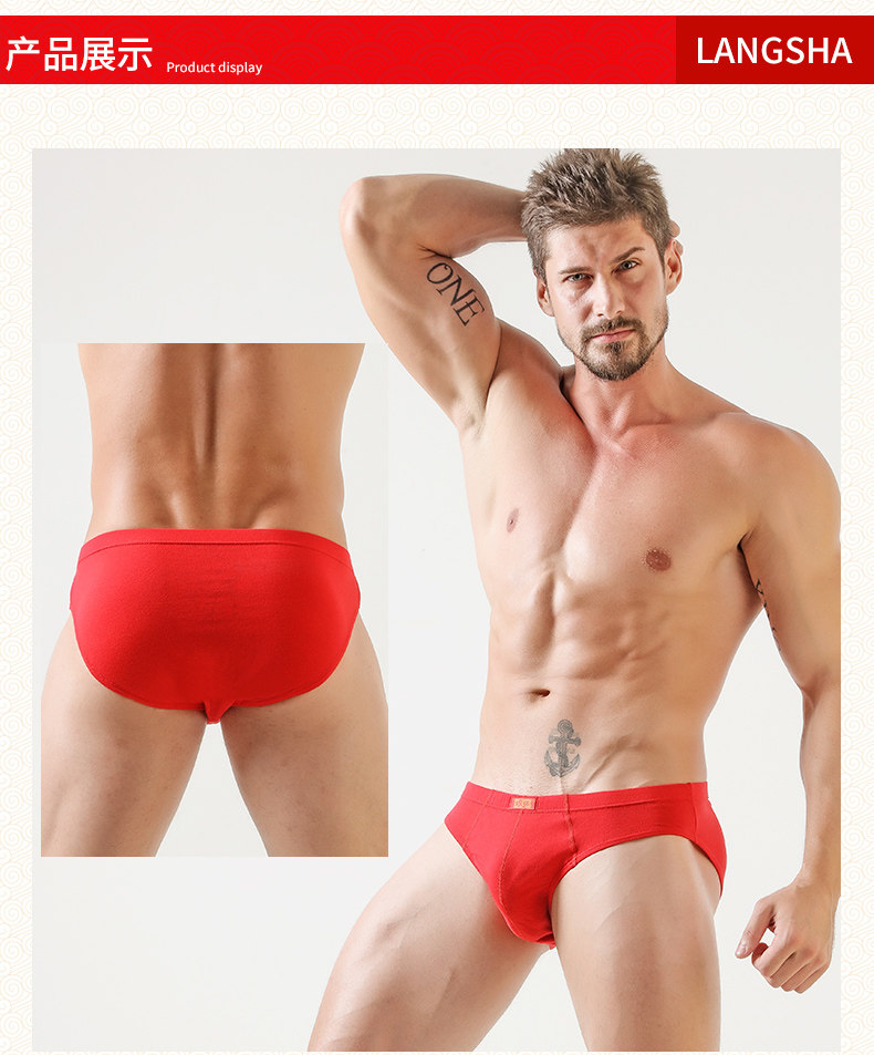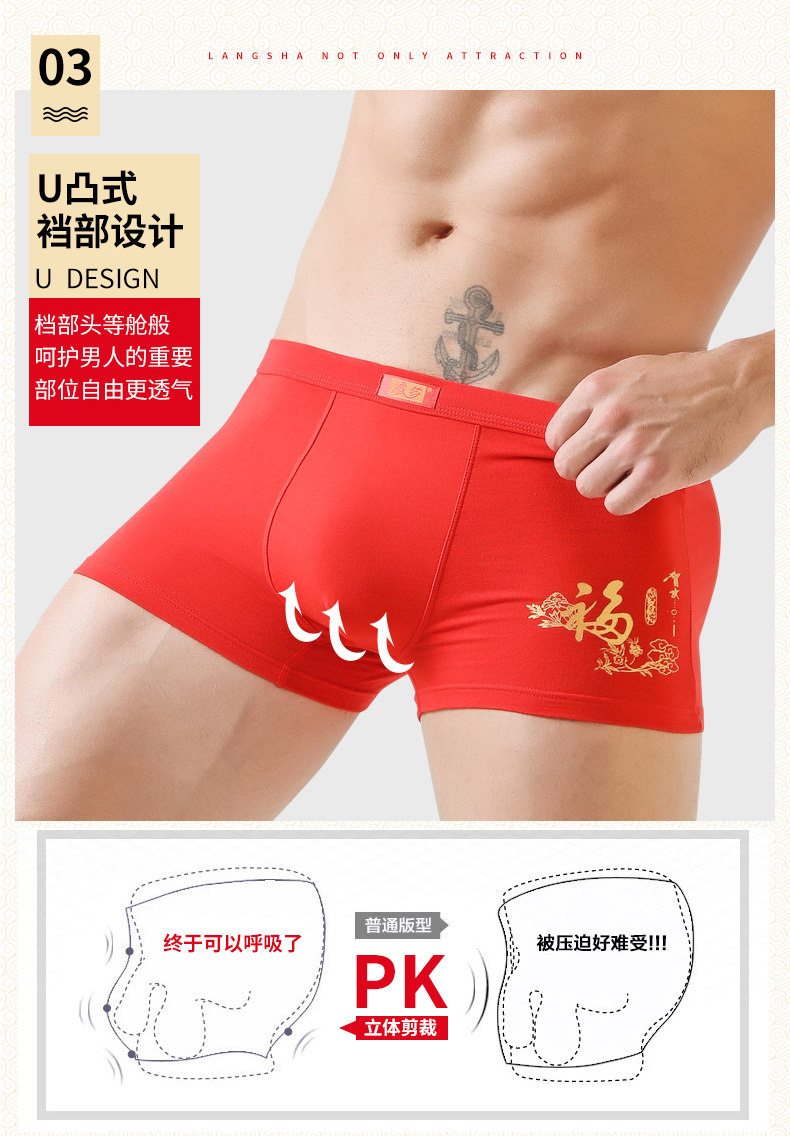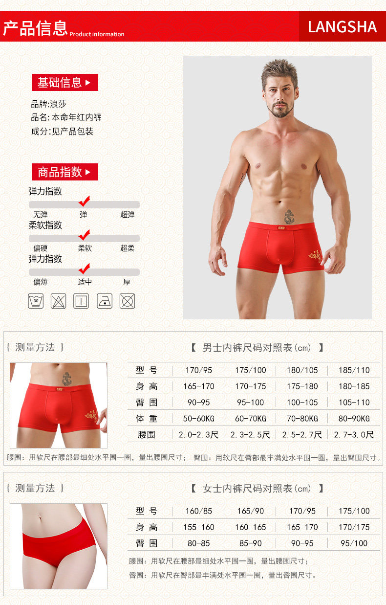 浪莎 Оберег на день рождения, мужское нижнее белье, красные шорты, штаны, для влюбленных