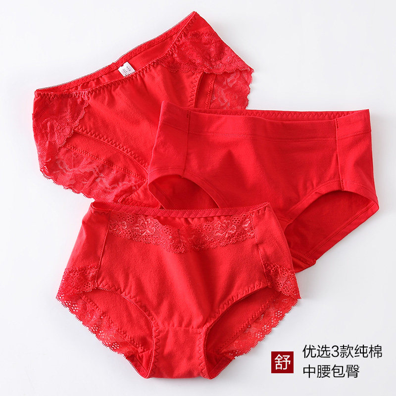 Оберег на день рождения, красное нижнее белье, хлопковые сексуальные штаны, трусы, 4 шт, большой размер, средняя посадка