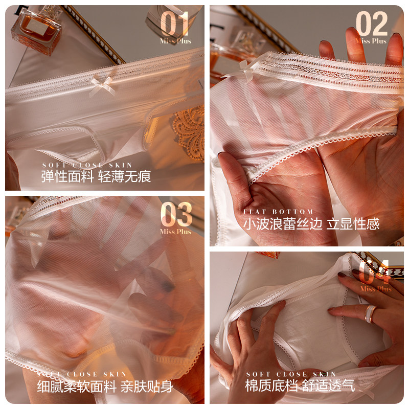 Сексуальные трусы, кружевные шелковые ультратонкие хлопковые антибактериальные штаны