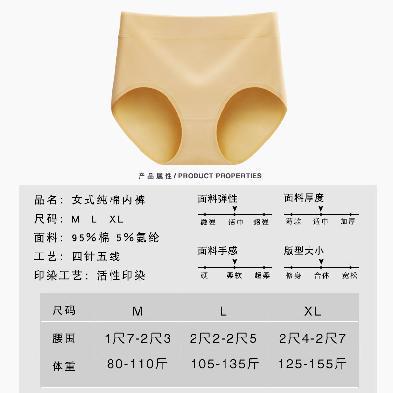 Трусы, хлопковые милые тонкие штаны, средняя посадка, большой размер, высокая талия