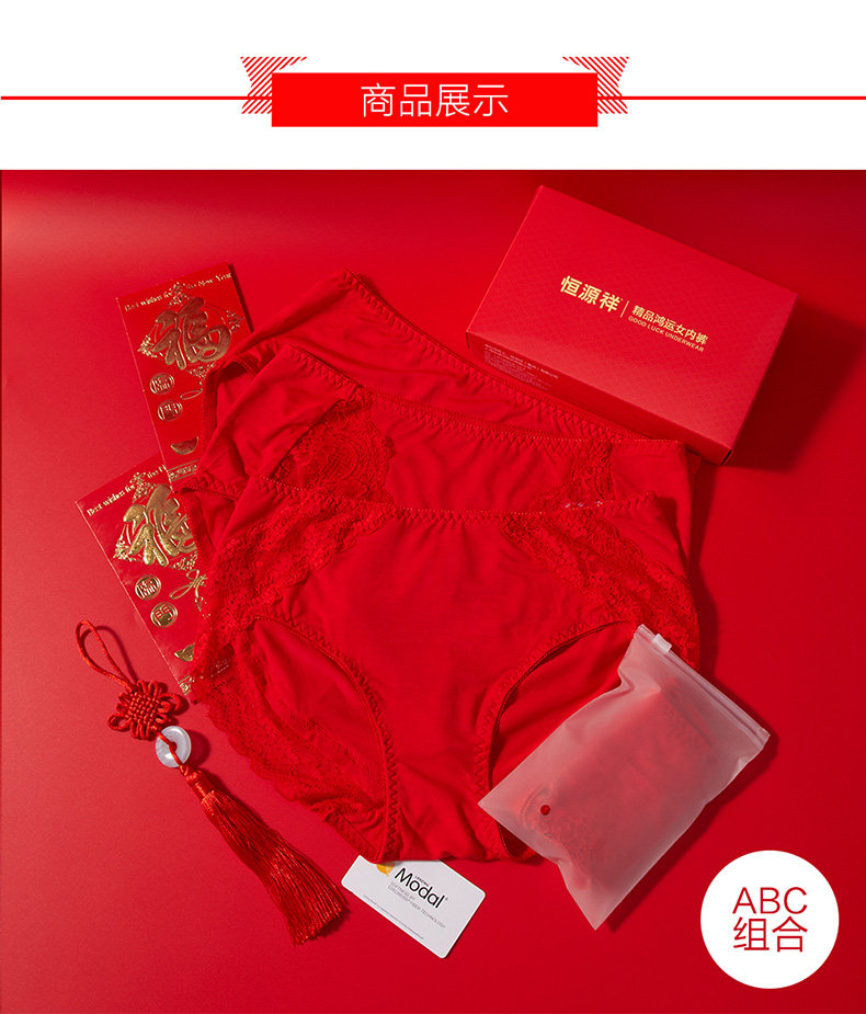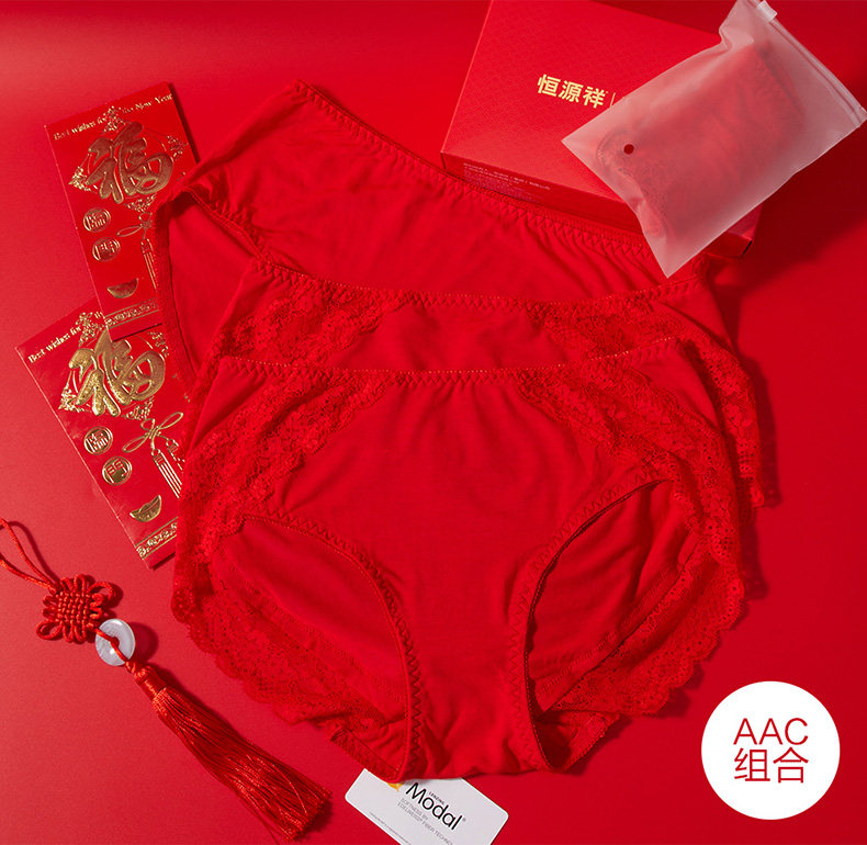 恒源祥 Красное хлопковое нижнее белье, праздничнный оберег на день рождения, шорты, подарочная коробка, средняя посадка