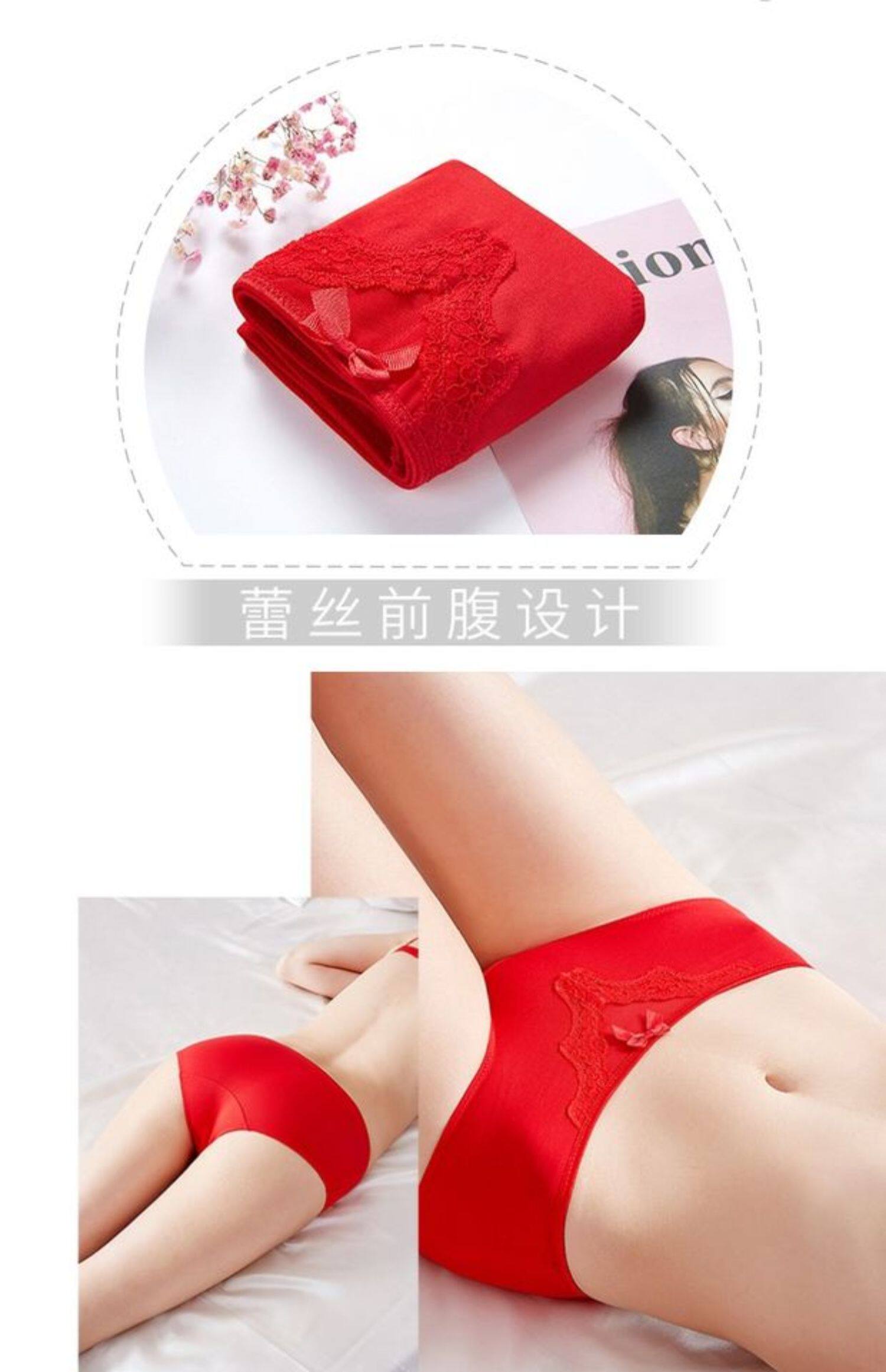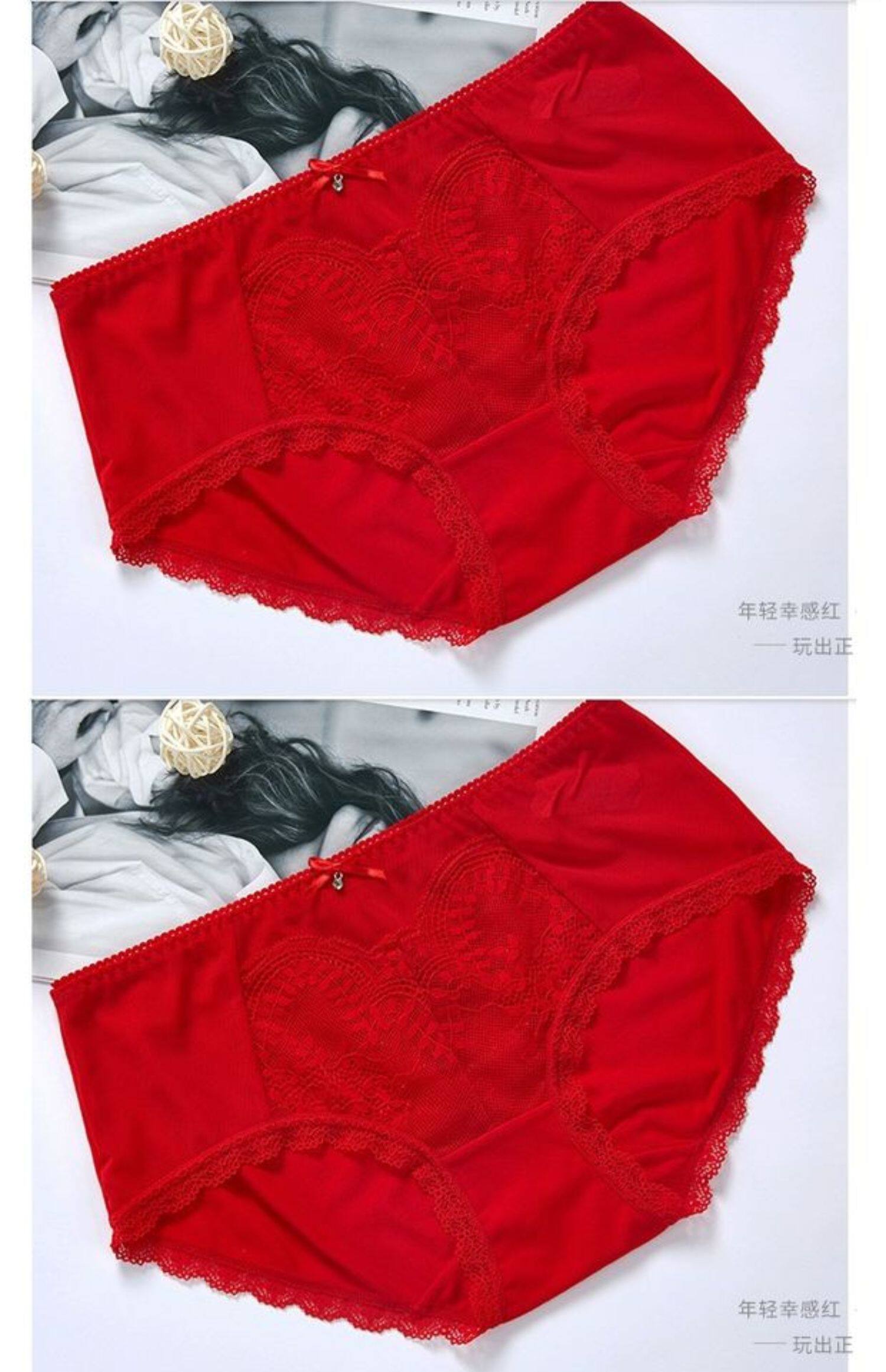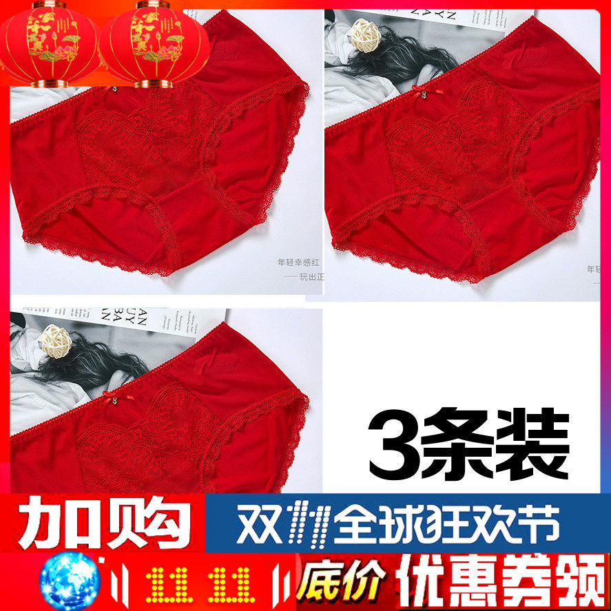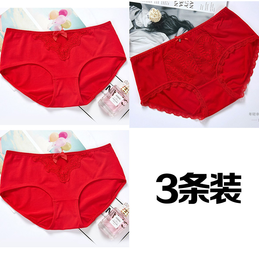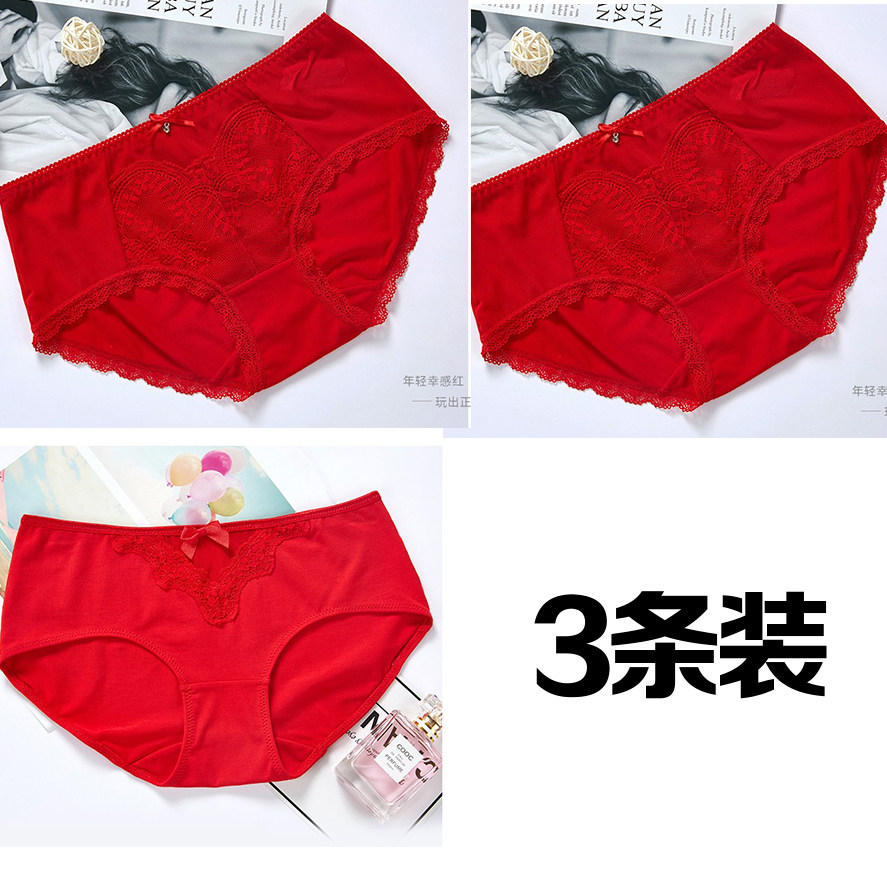 Нижнее белье, штаны, красный сексуальный дышащий оберег на день рождения, средняя посадка, 3 шт