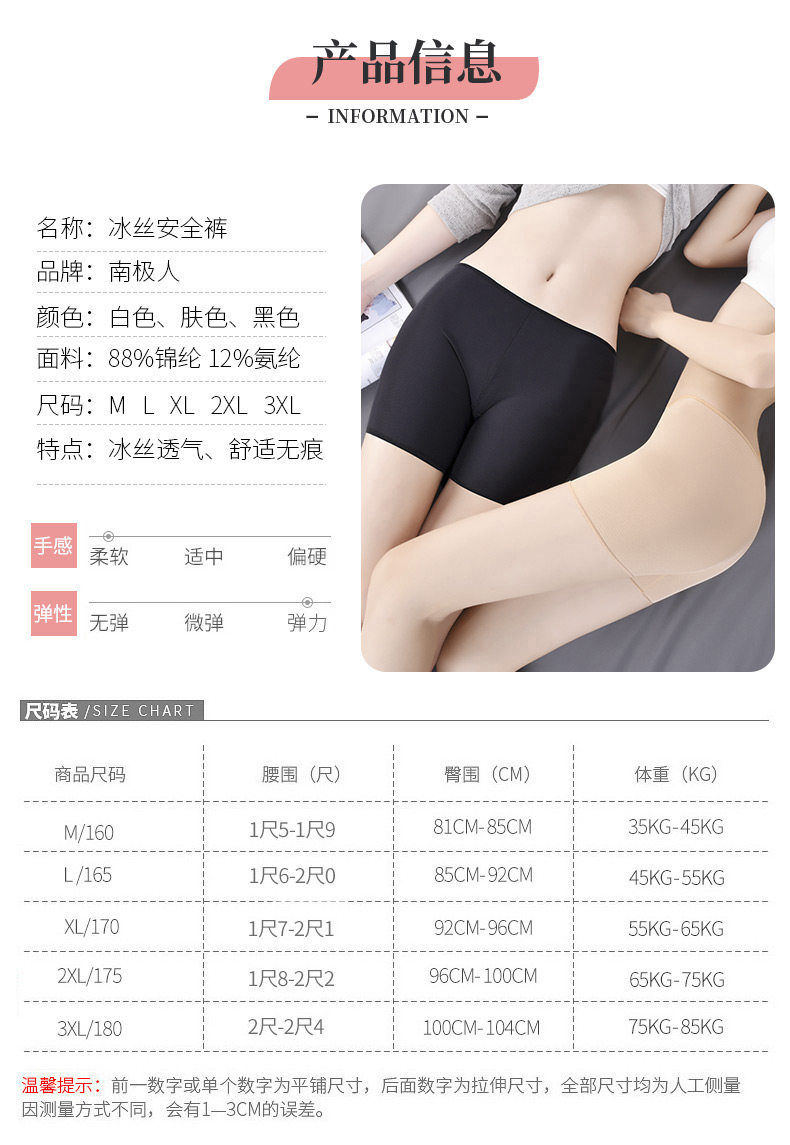 南极人 Безопасные штаны, летнее шелковое защитное белье, белое базовое нижнее белье