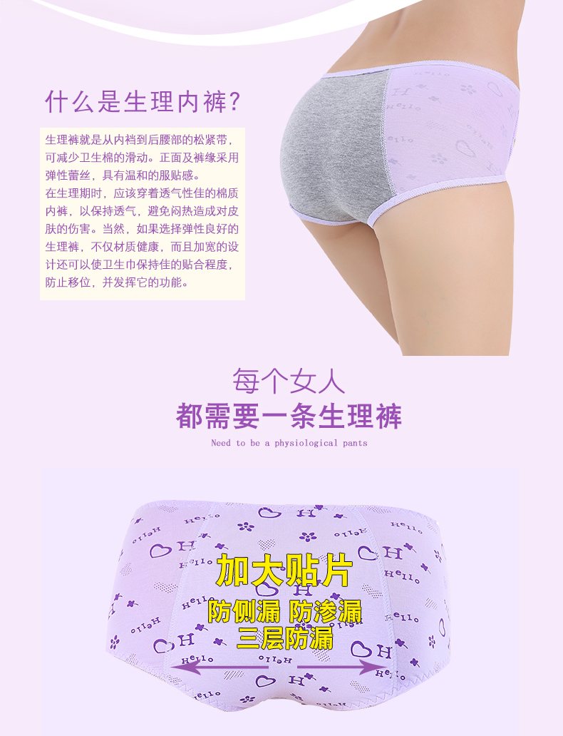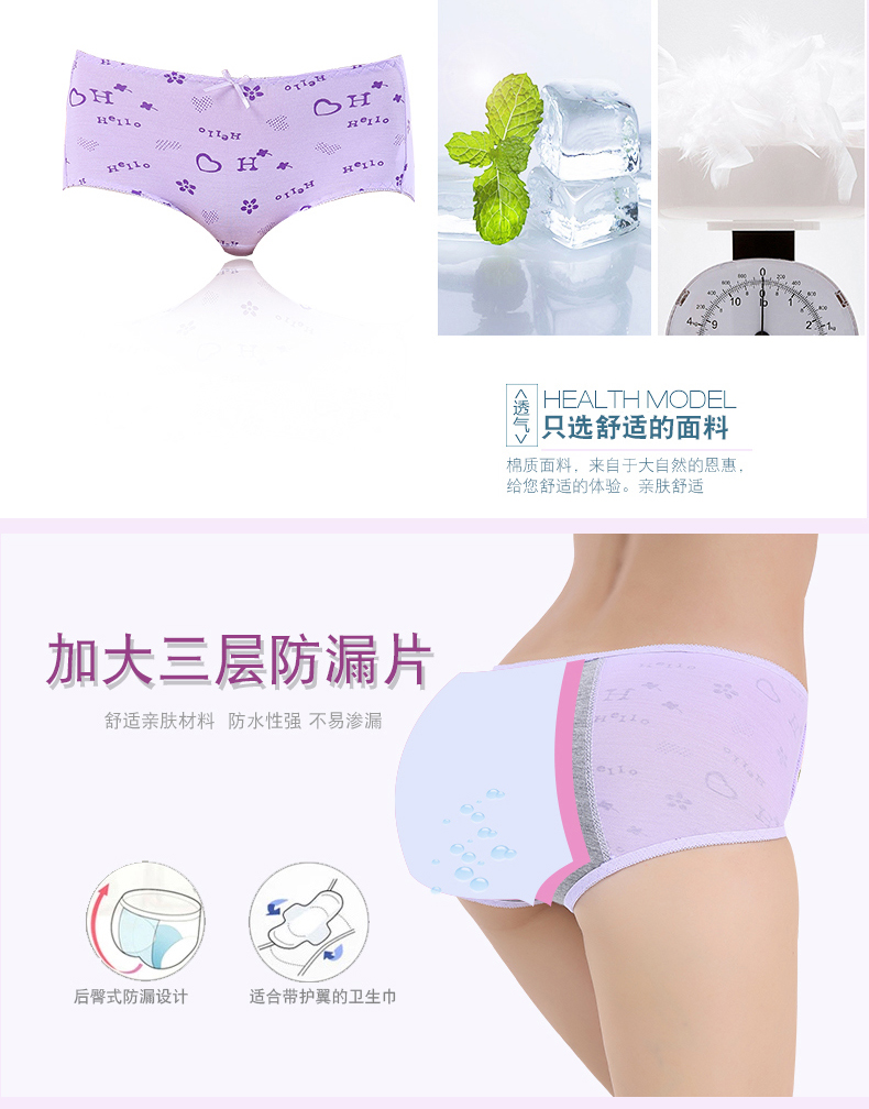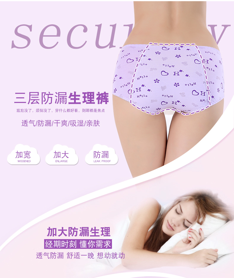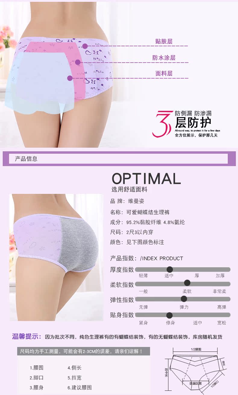 维曼姿 Физиологичные герметические штаны, физиологичное нижнее белье, трусы, средняя посадка, большой размер