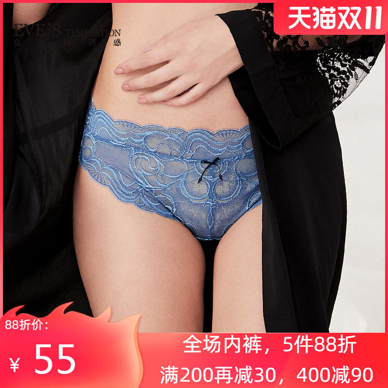 Синее нижнее белье, кружевные ультратонкие хлопковые штаны