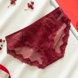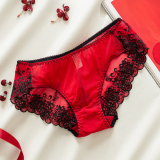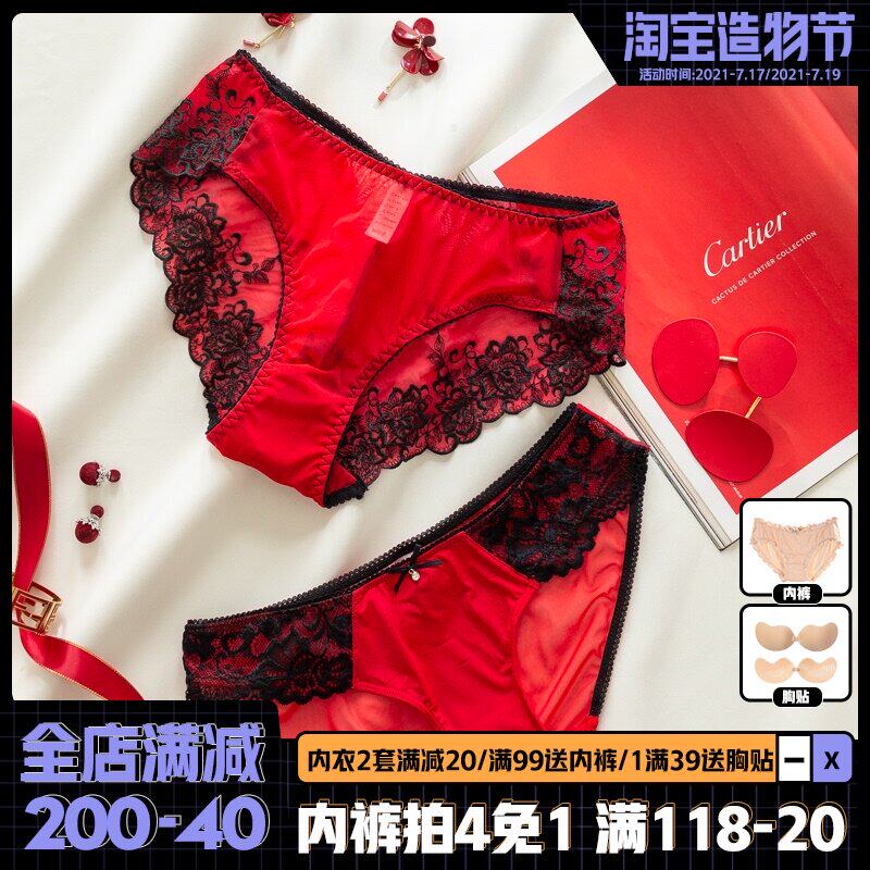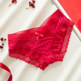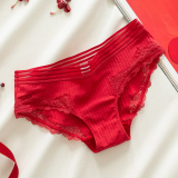 Сексуальные трусы, кружевные штаны, красная раскраска, хлопковый оберег на день рождения, средняя посадка, 100% хлопок