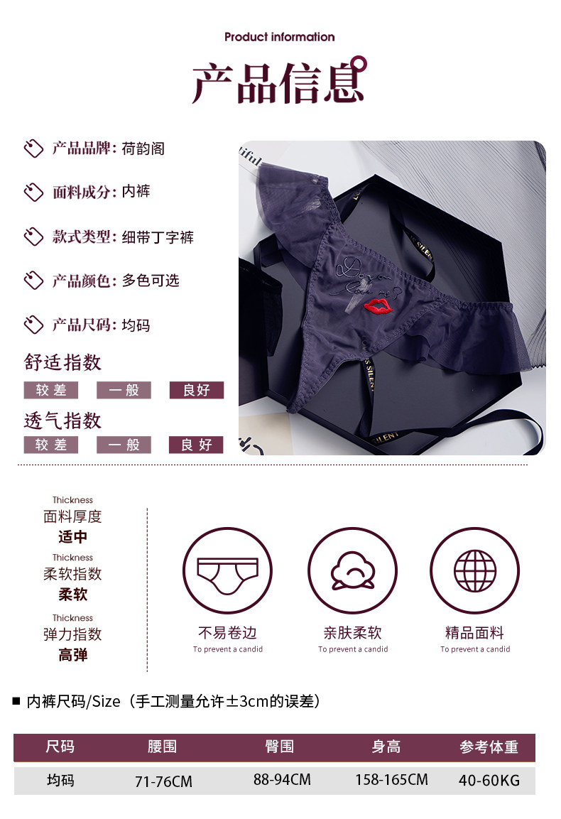 荷韵阁 Нижнее белье, кружевные сексуальные мягкие штаны, дышащие трусы