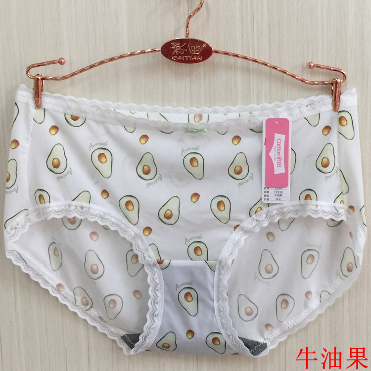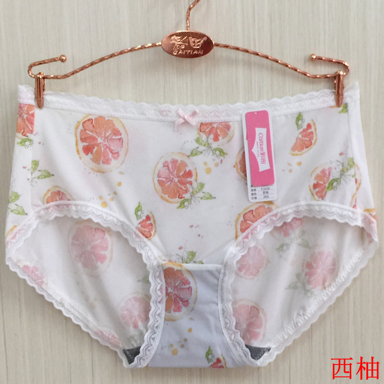彩田 Нижнее белье женское фруктового цвета из ледяного шелка 31587 со средней талией, бесшовное, сексуальное, для девочек, с кружевной кромкой, графен