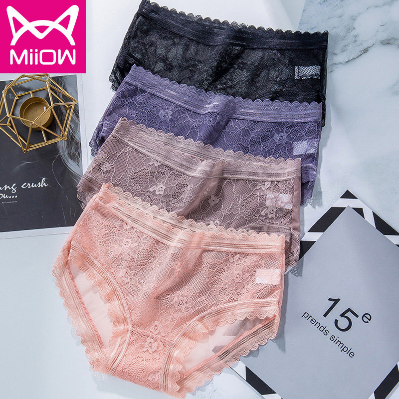 Шелковые трусы, ультратонкие кружевные хлопковые сексуальные штаны, средняя посадка