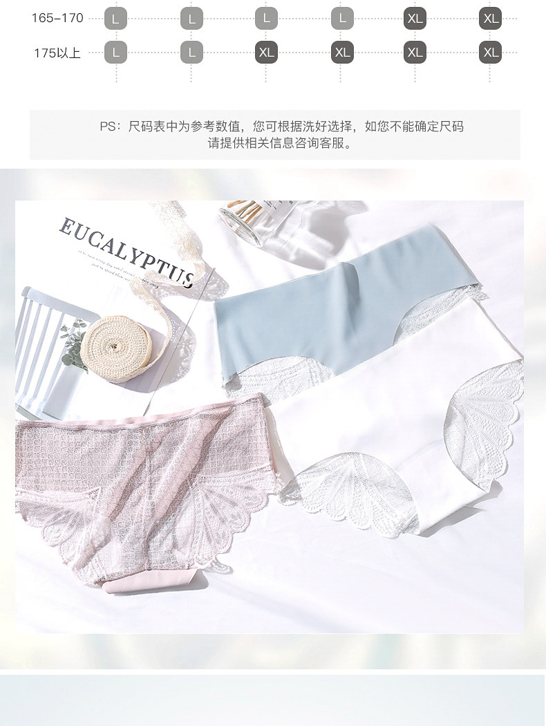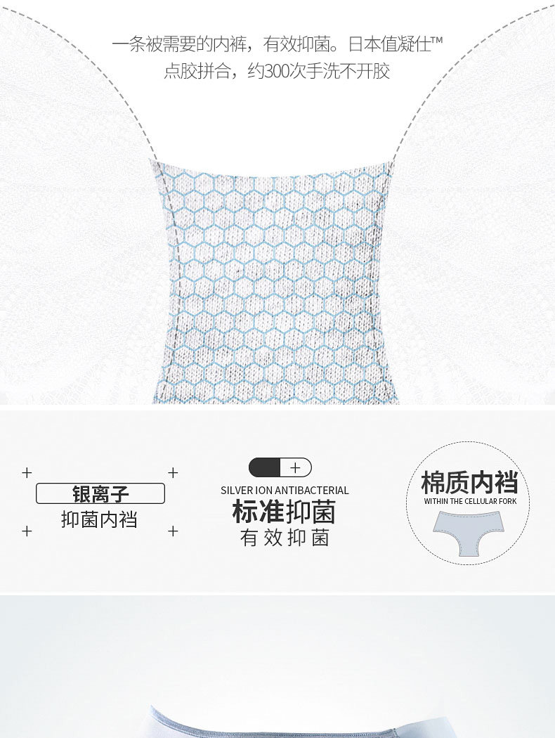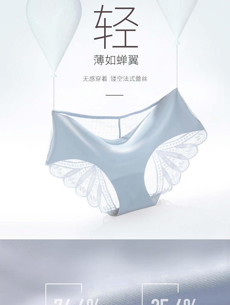 南极人 Трусы, кружевные шелковые хлопковые антибактериальные сексуальные дышащие японские летние штаны, средняя посадка