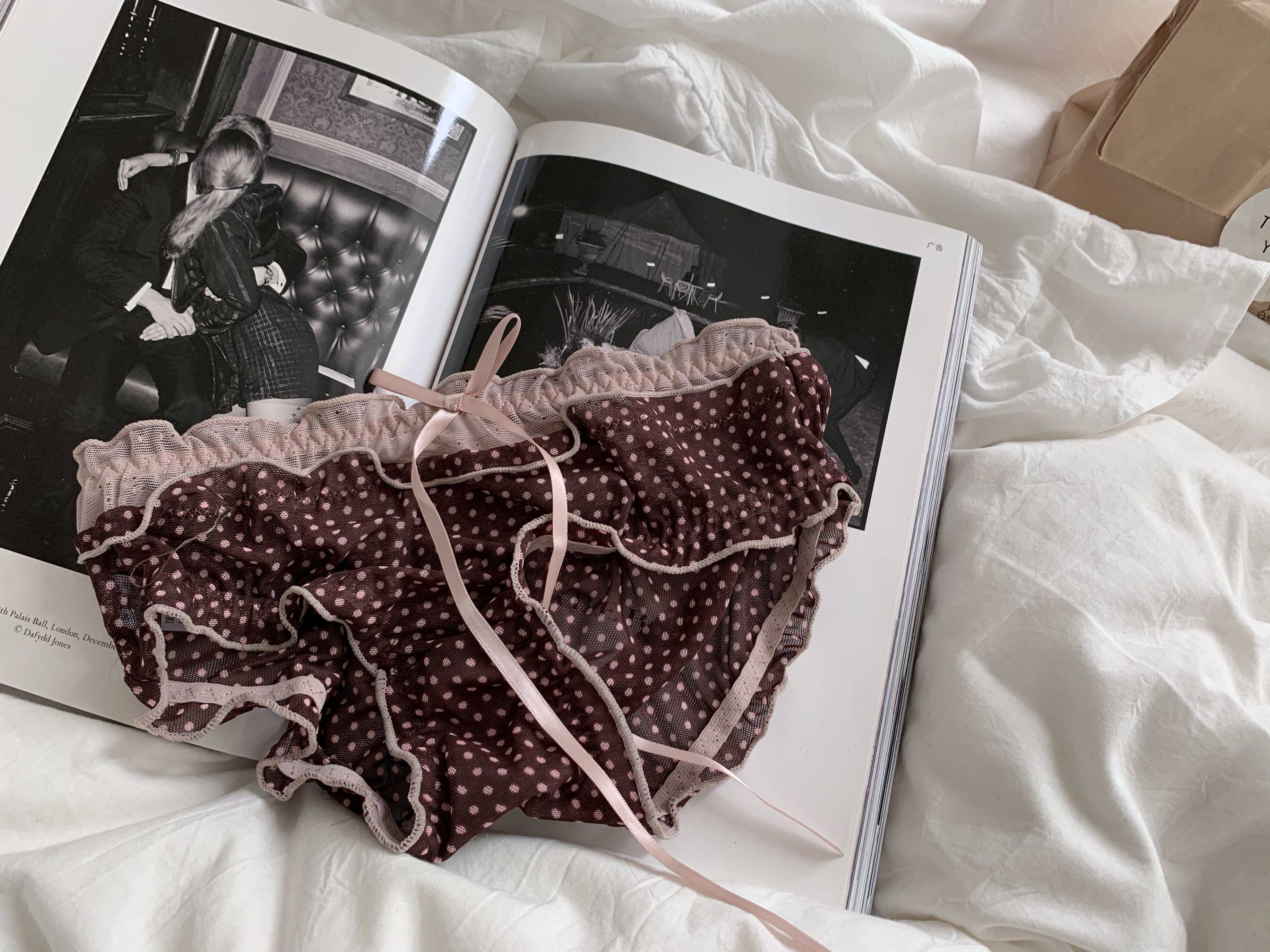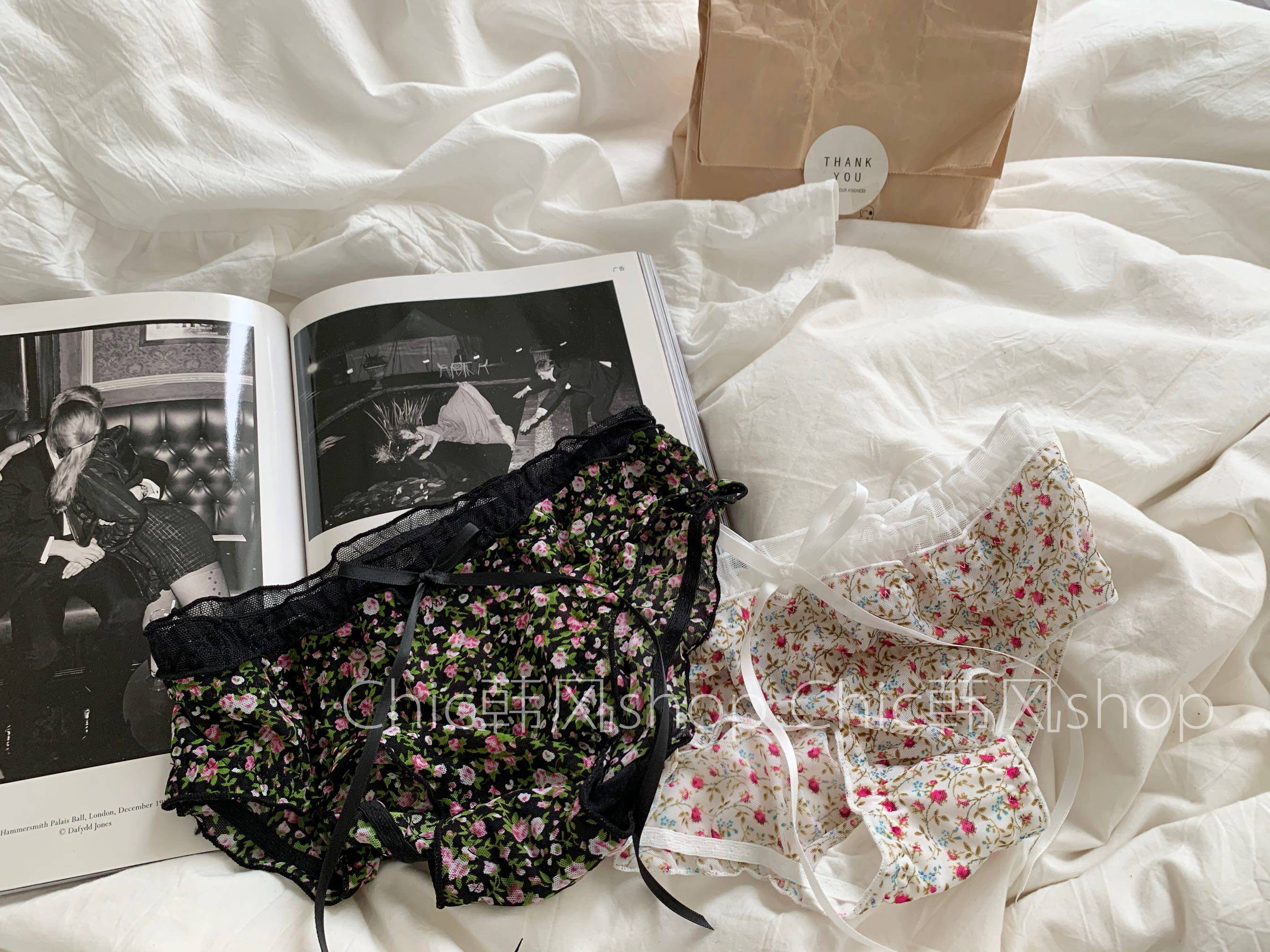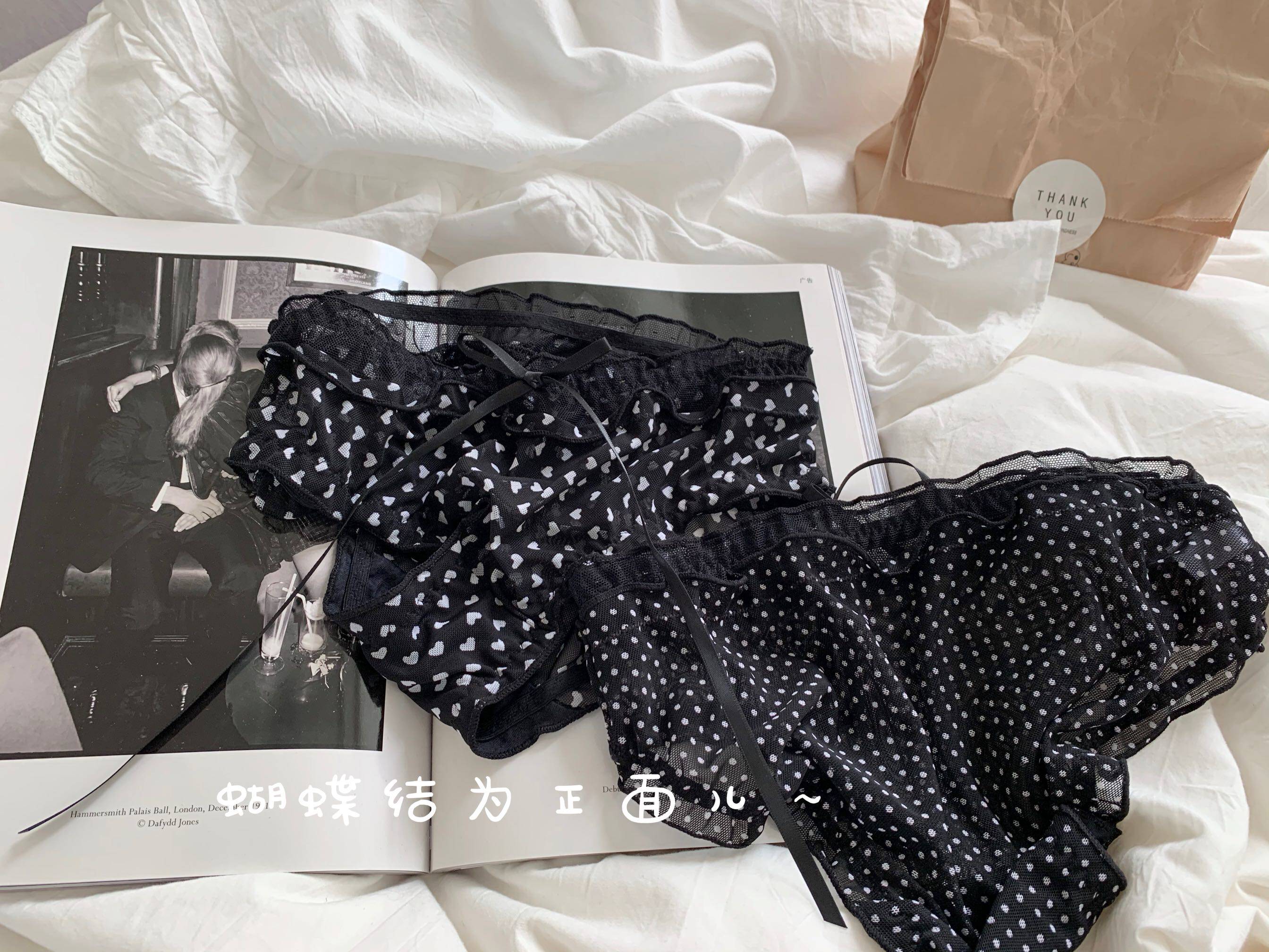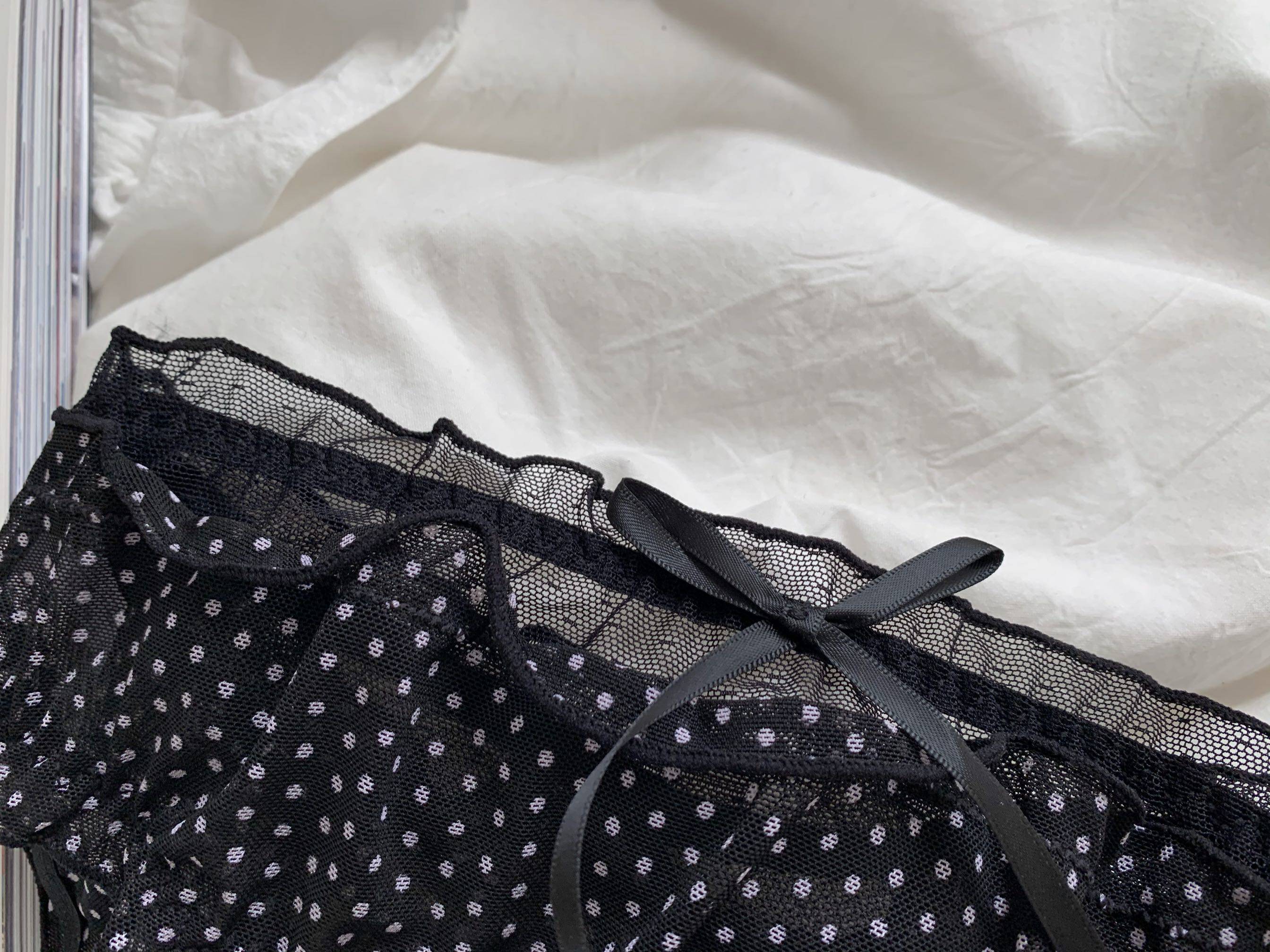 Сетчатые трусики Mori Girl с цветочным принтом в горошек