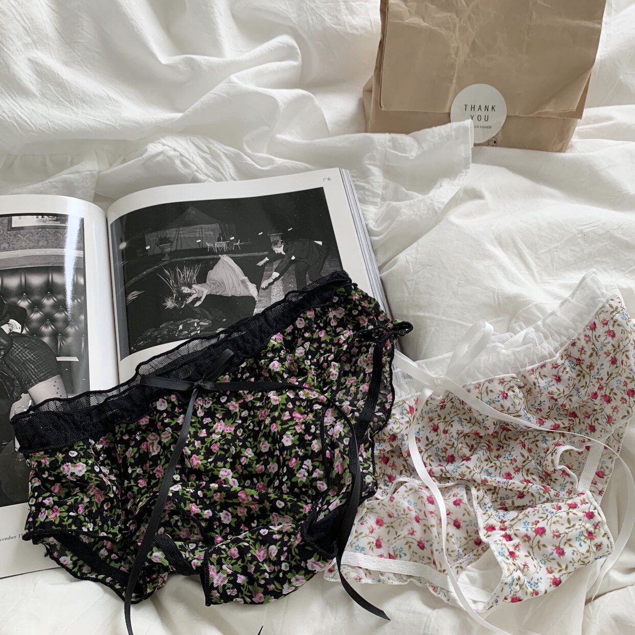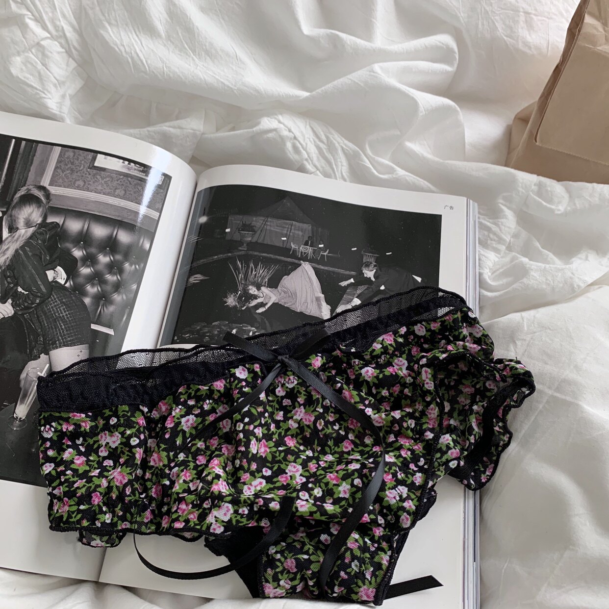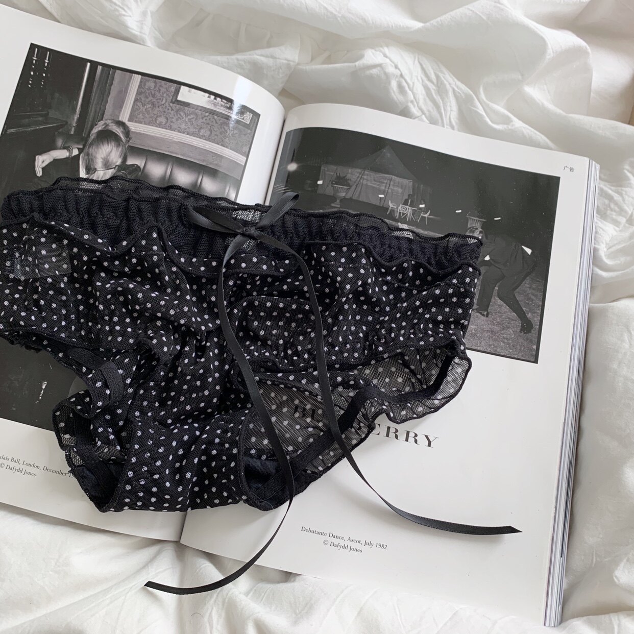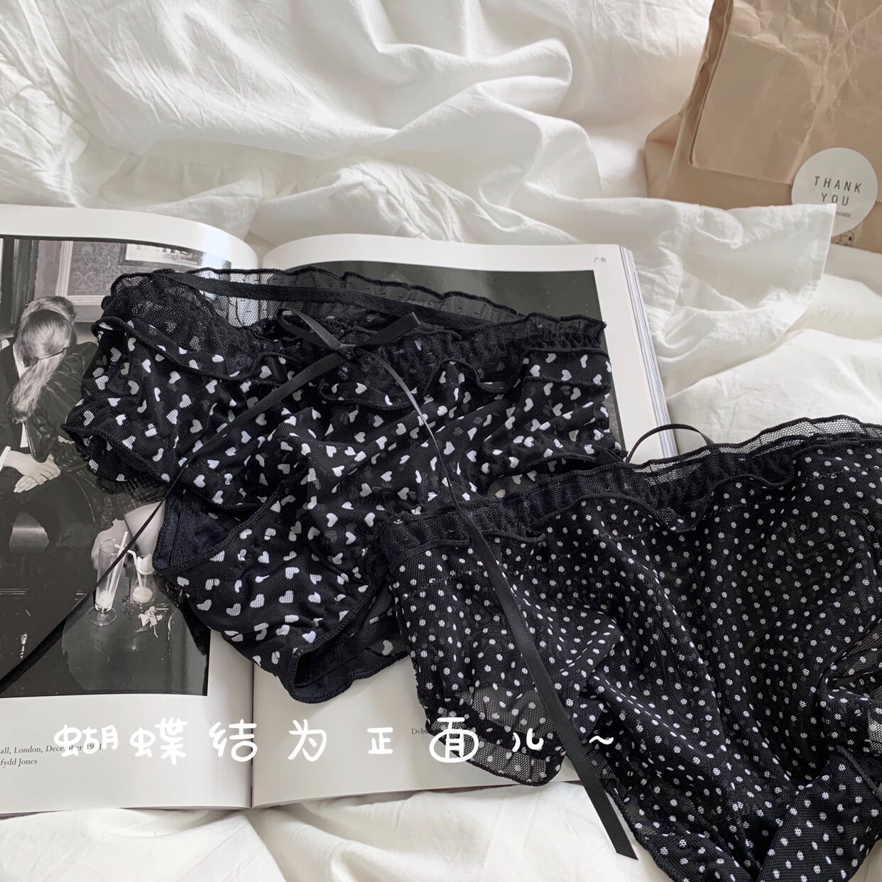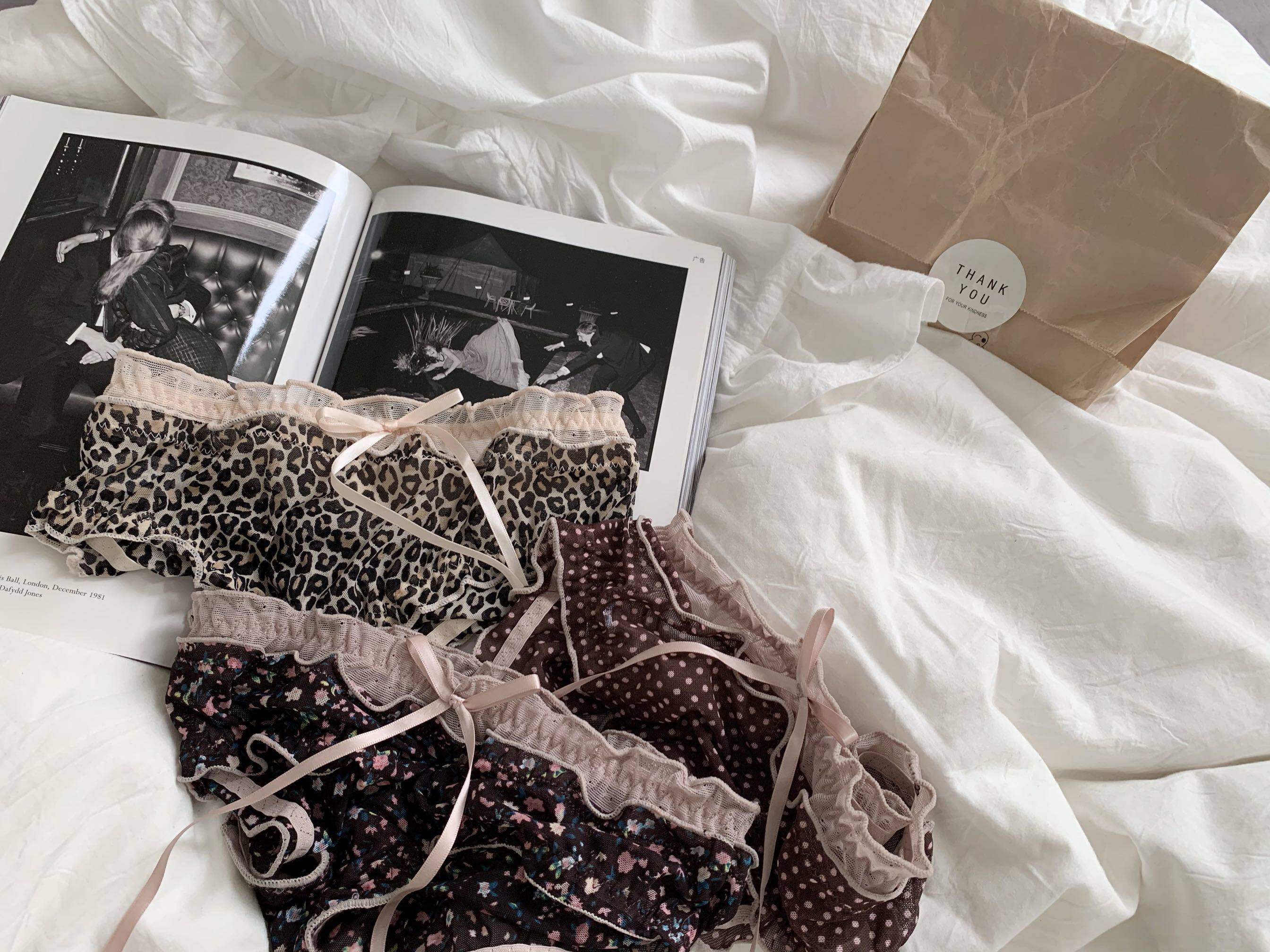 Сетчатые трусики Mori Girl с цветочным принтом в горошек