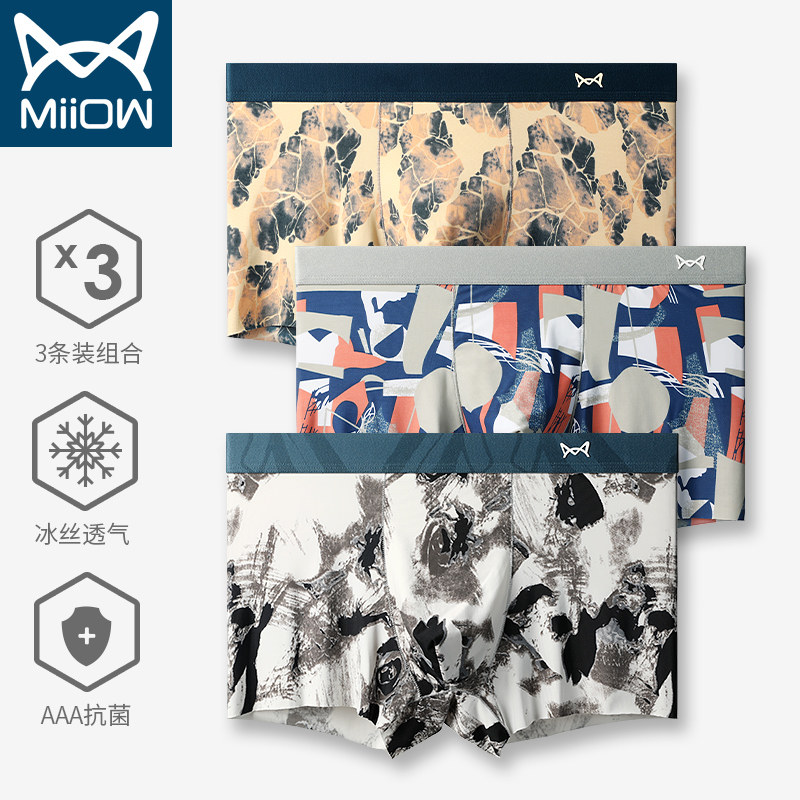 Мужские шелковые трусы, ультратонкие тонкие антибактериальные трендовые штаны, средняя посадка