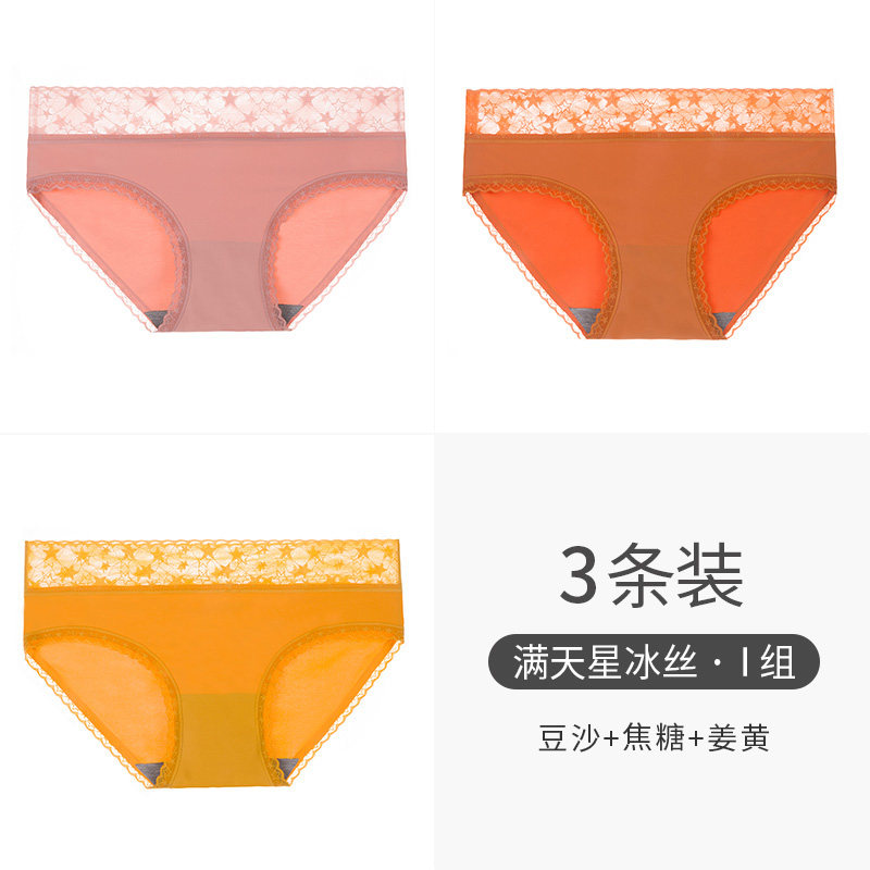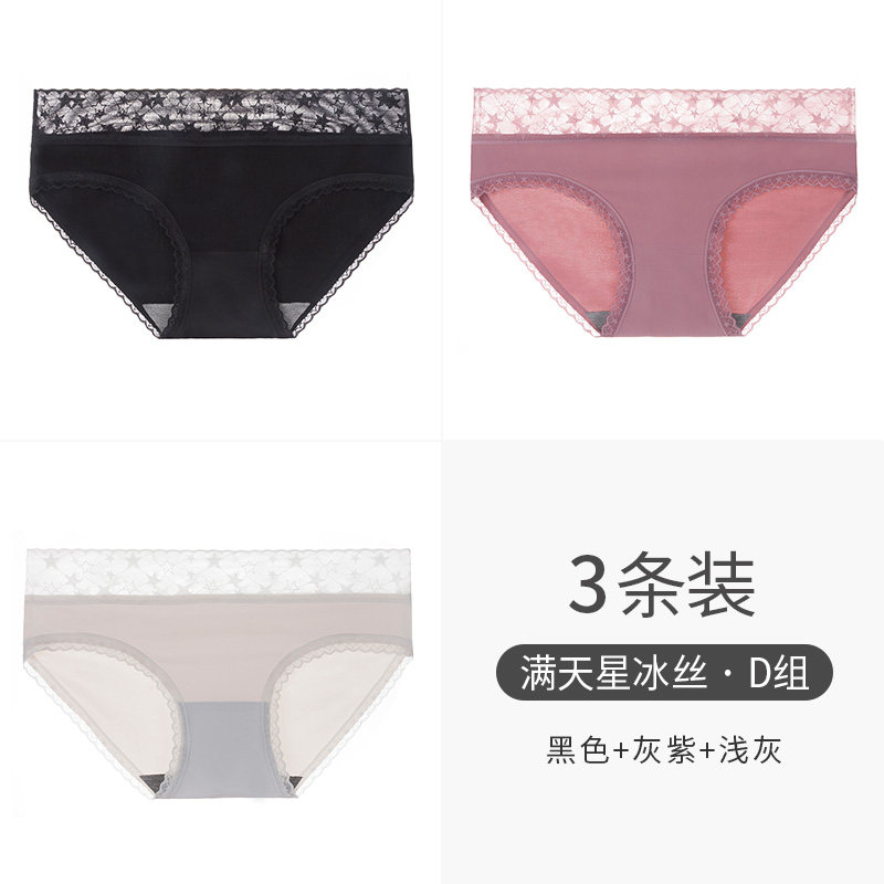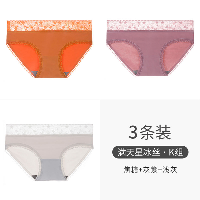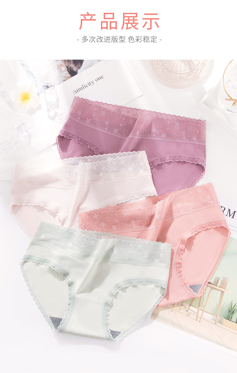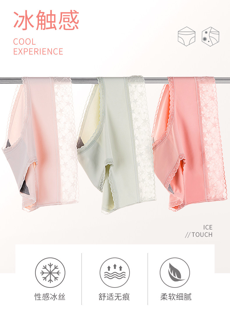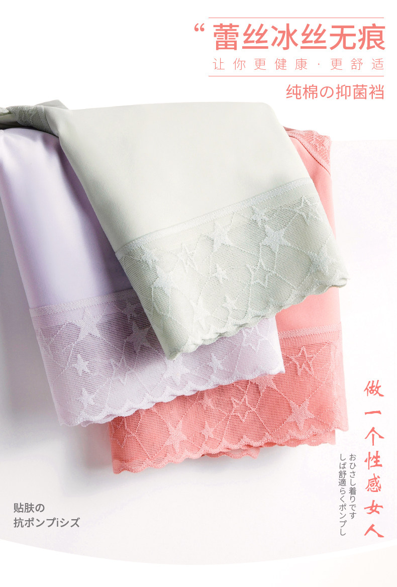 南极人 Шелковые трусы, хлопковые антибактериальные кружевные дышащие летние тонкие штаны, средняя посадка