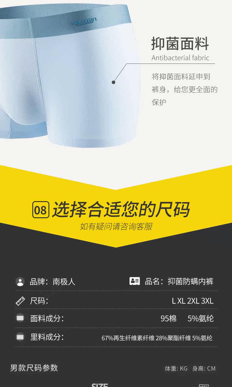 南极人 Антибактериальные трусы, дышащие летние тонкие штаны