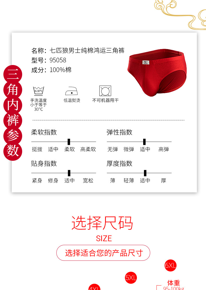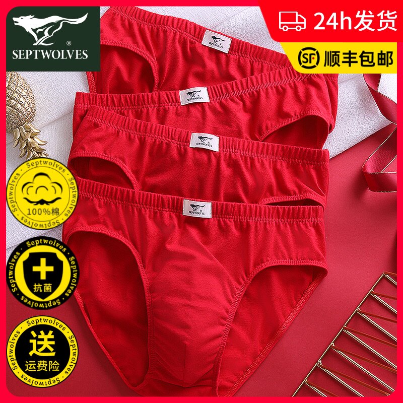 Septwolves, антибактериальное нижнее белье, хлопковый оберег на день рождения, красные трусы, шорты, штаны, большой размер