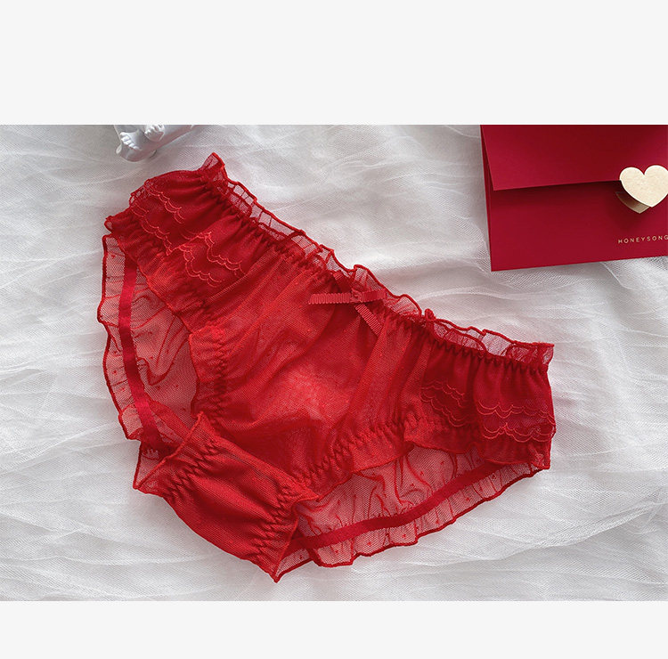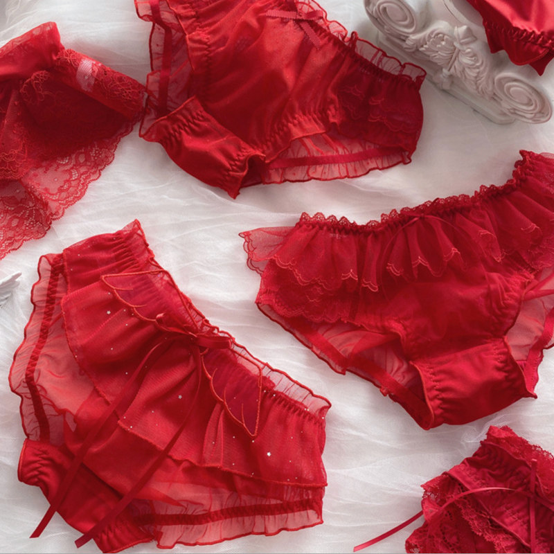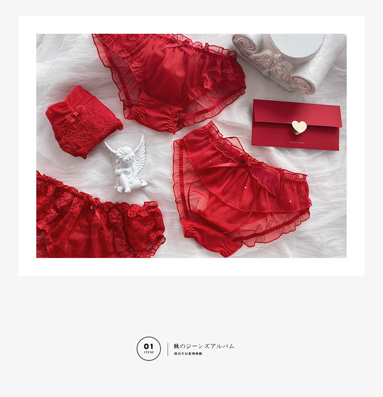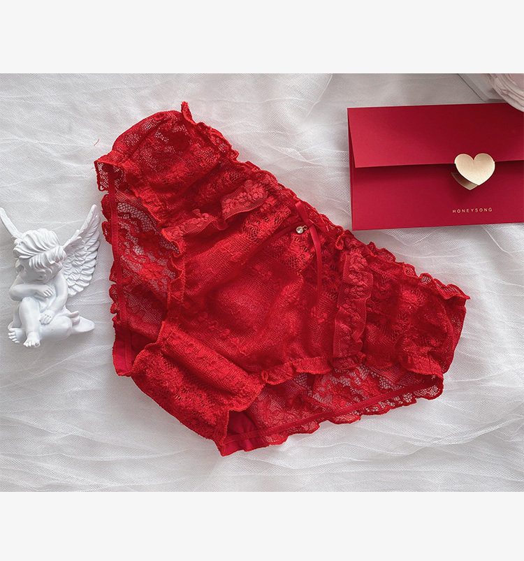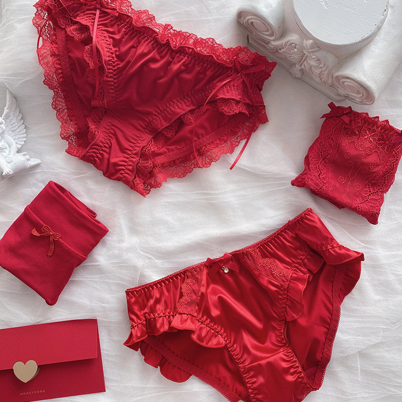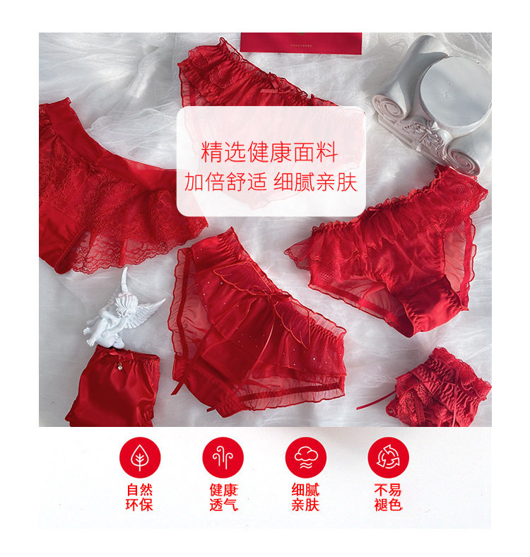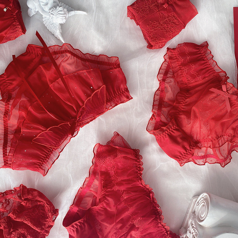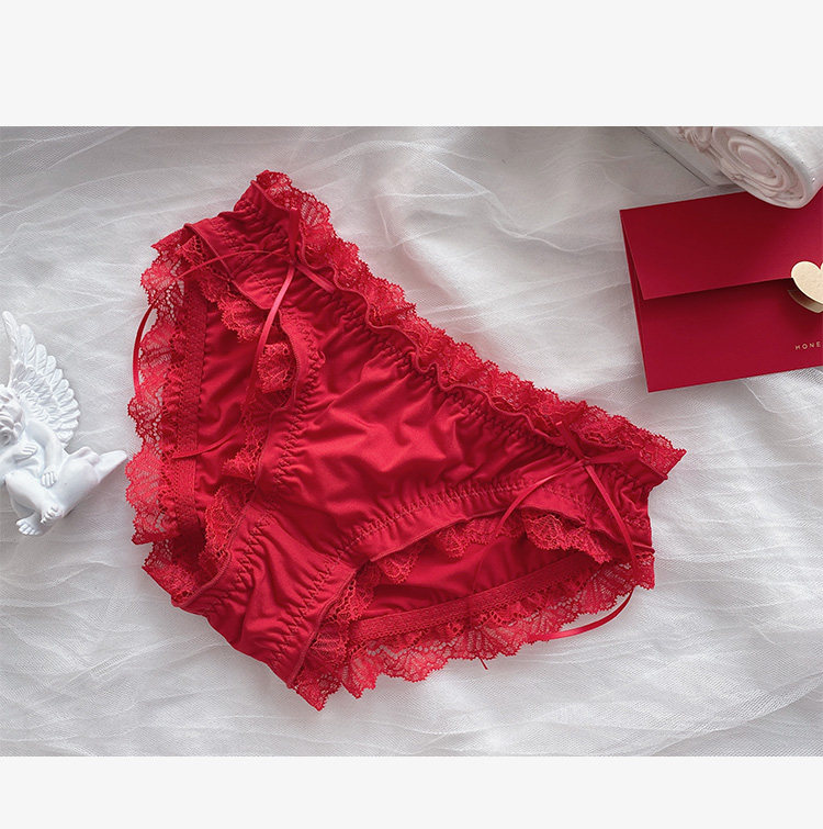 Красное нижнее белье, штаны, кружевной хлопковый милый оберег на день рождения, японские трусы