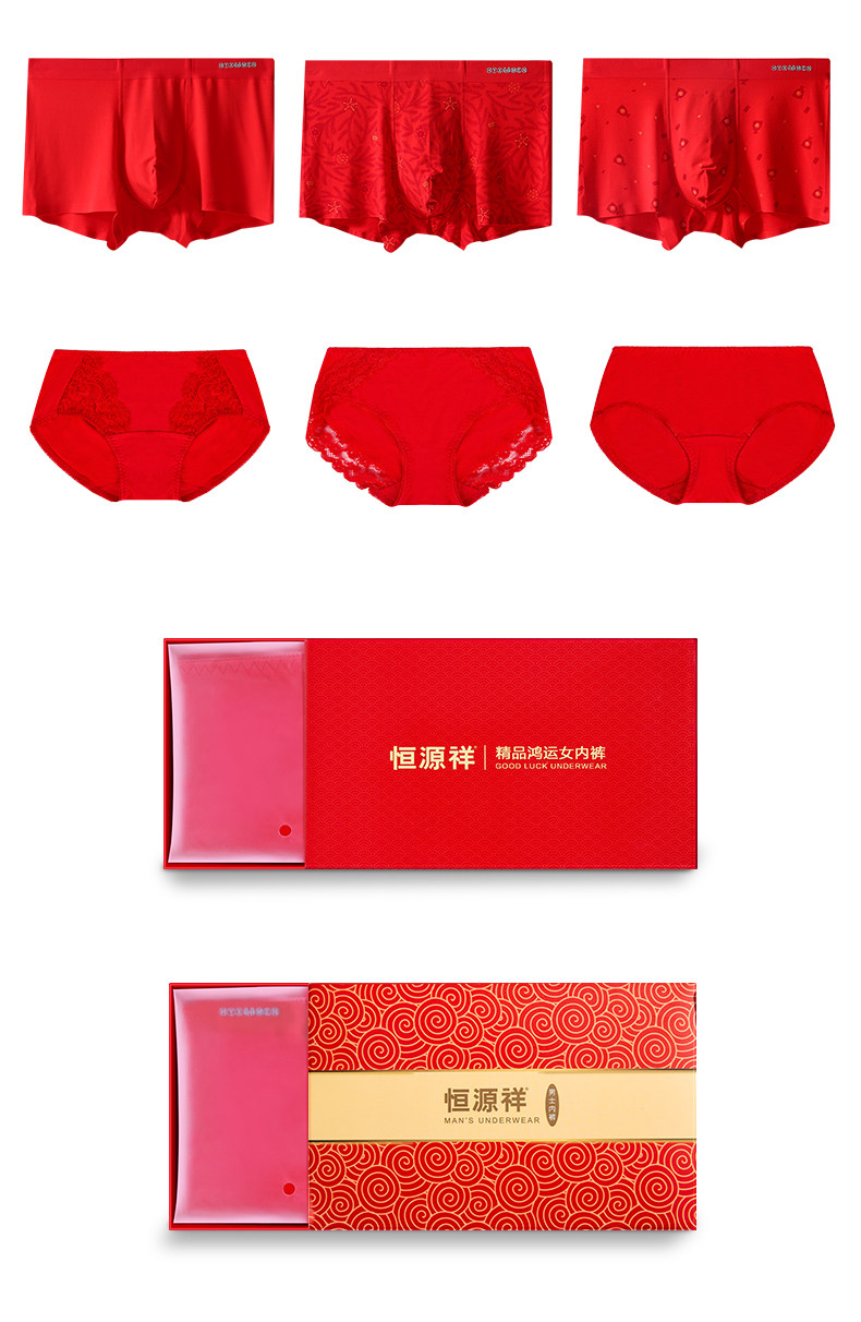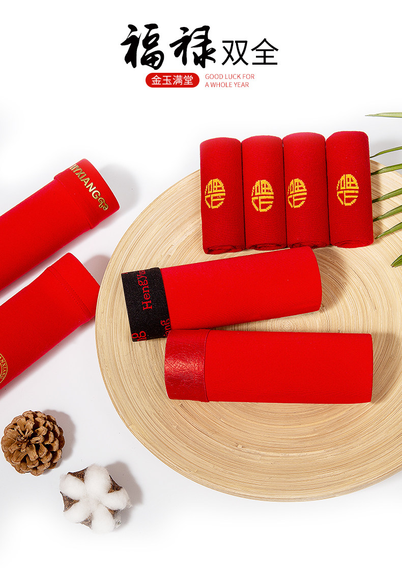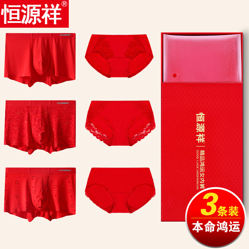 恒源祥 Красное нижнее белье, мужские штаны, шорты, оберег на день рождения, трусы, для влюбленных