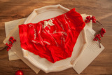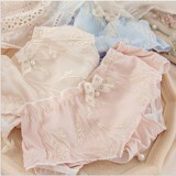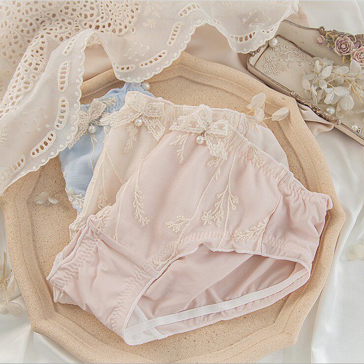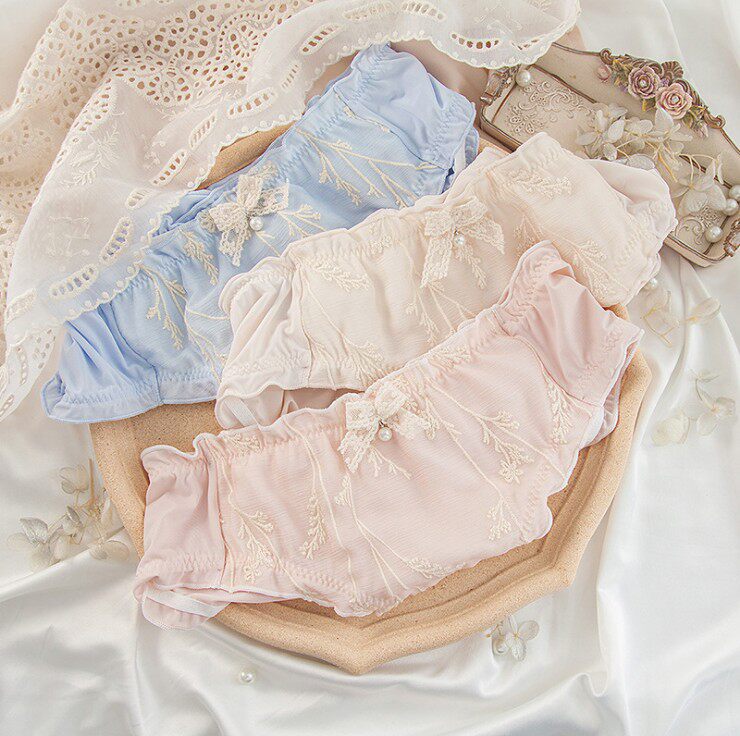 Японская ретро тонкая поясная сумка с бантиком, антибактериальное нижнее белье, с вышивкой, средняя посадка, с акцентом на бедрах
