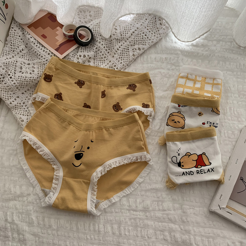 Осенние мультяшные милые кружевные трусы, леггинсы, коллекция 2021, средняя посадка