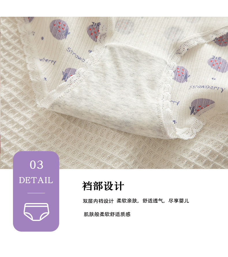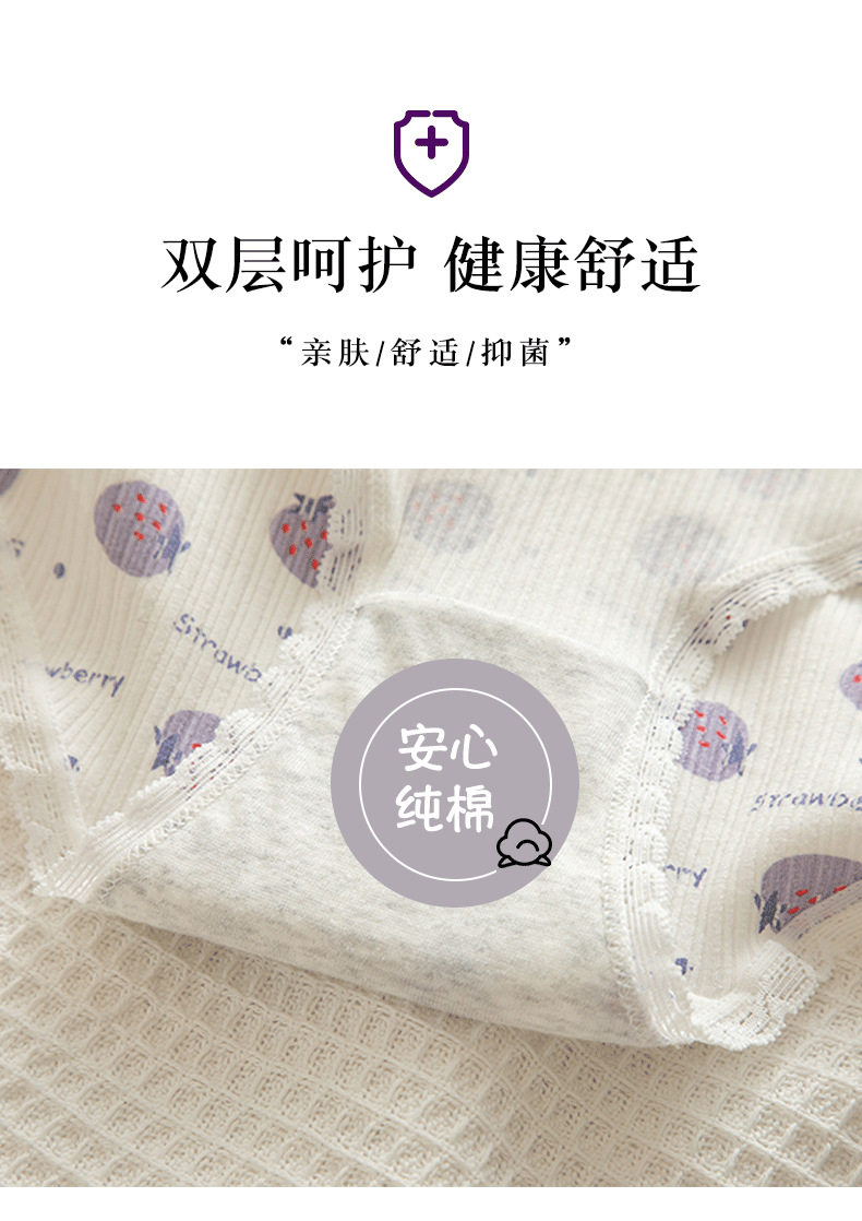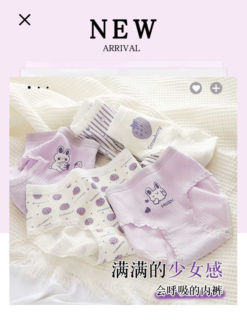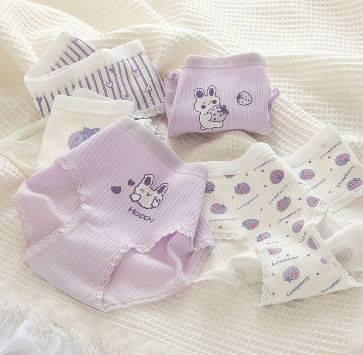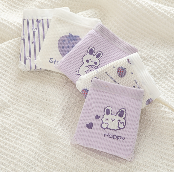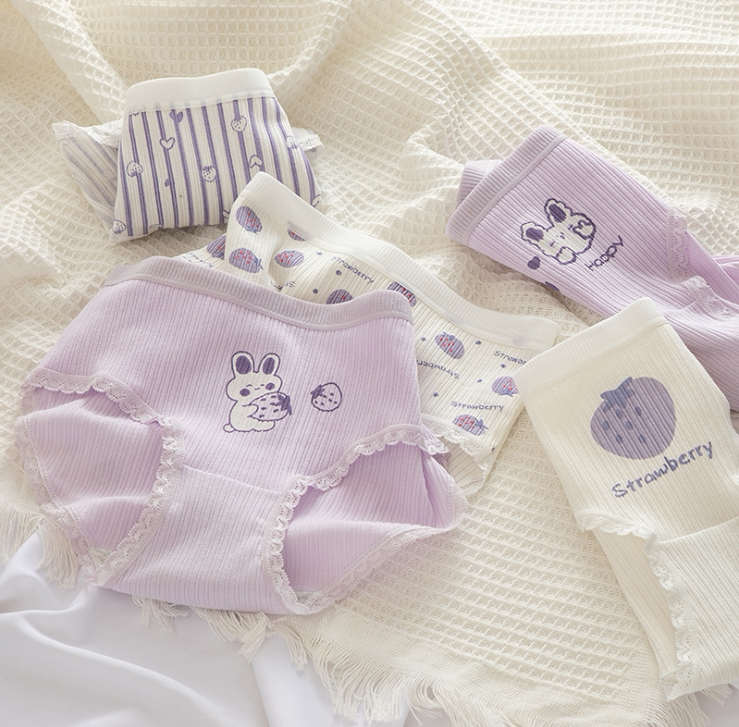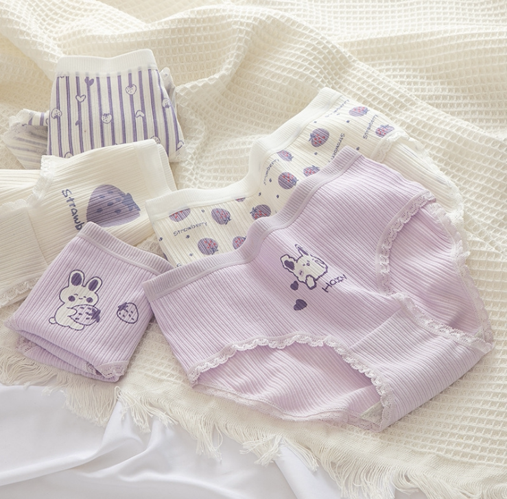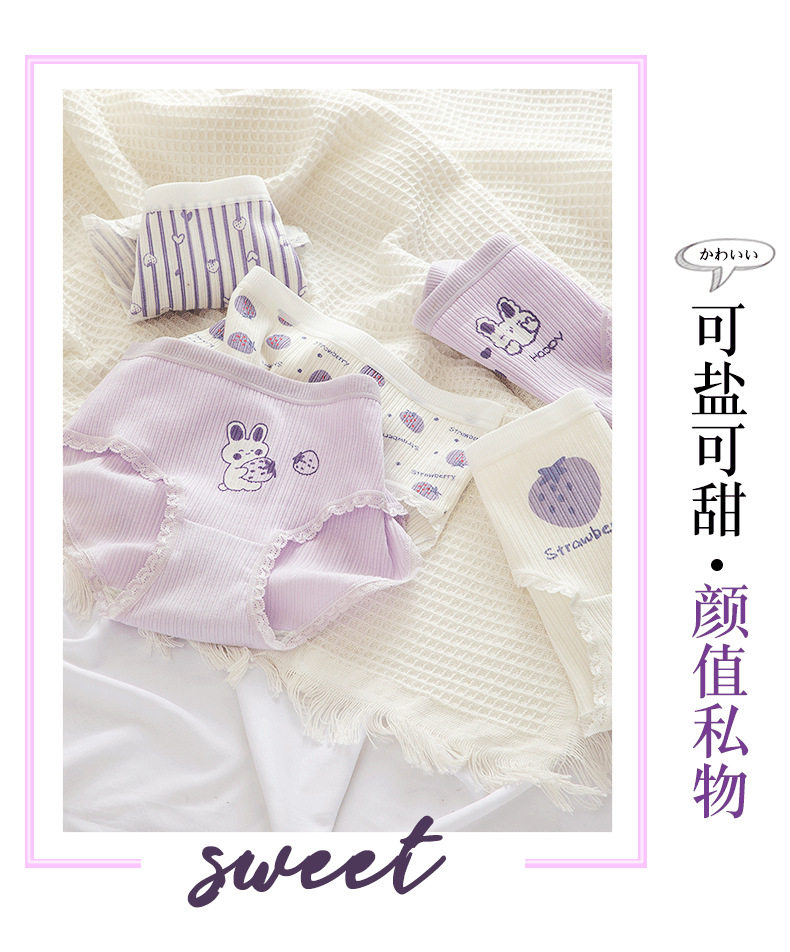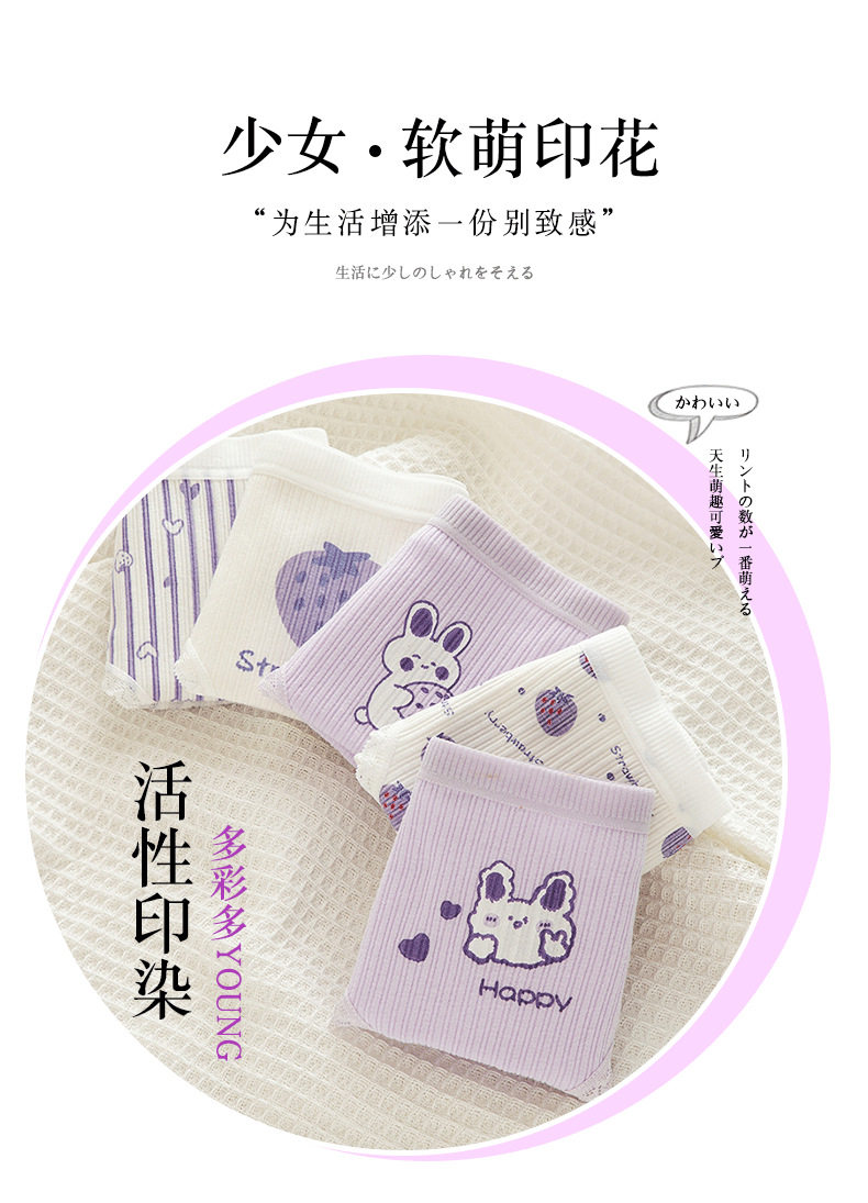 Сиреневая японская мультяшная клубника, милый кролик для школьников и студентов, комфортные трусы, штаны, средняя посадка