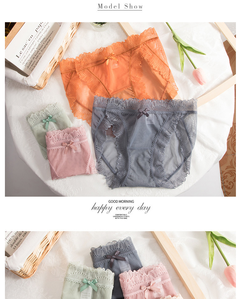 Шелковые трусы, кружевные хлопковые антибактериальные японские штаны, средняя посадка