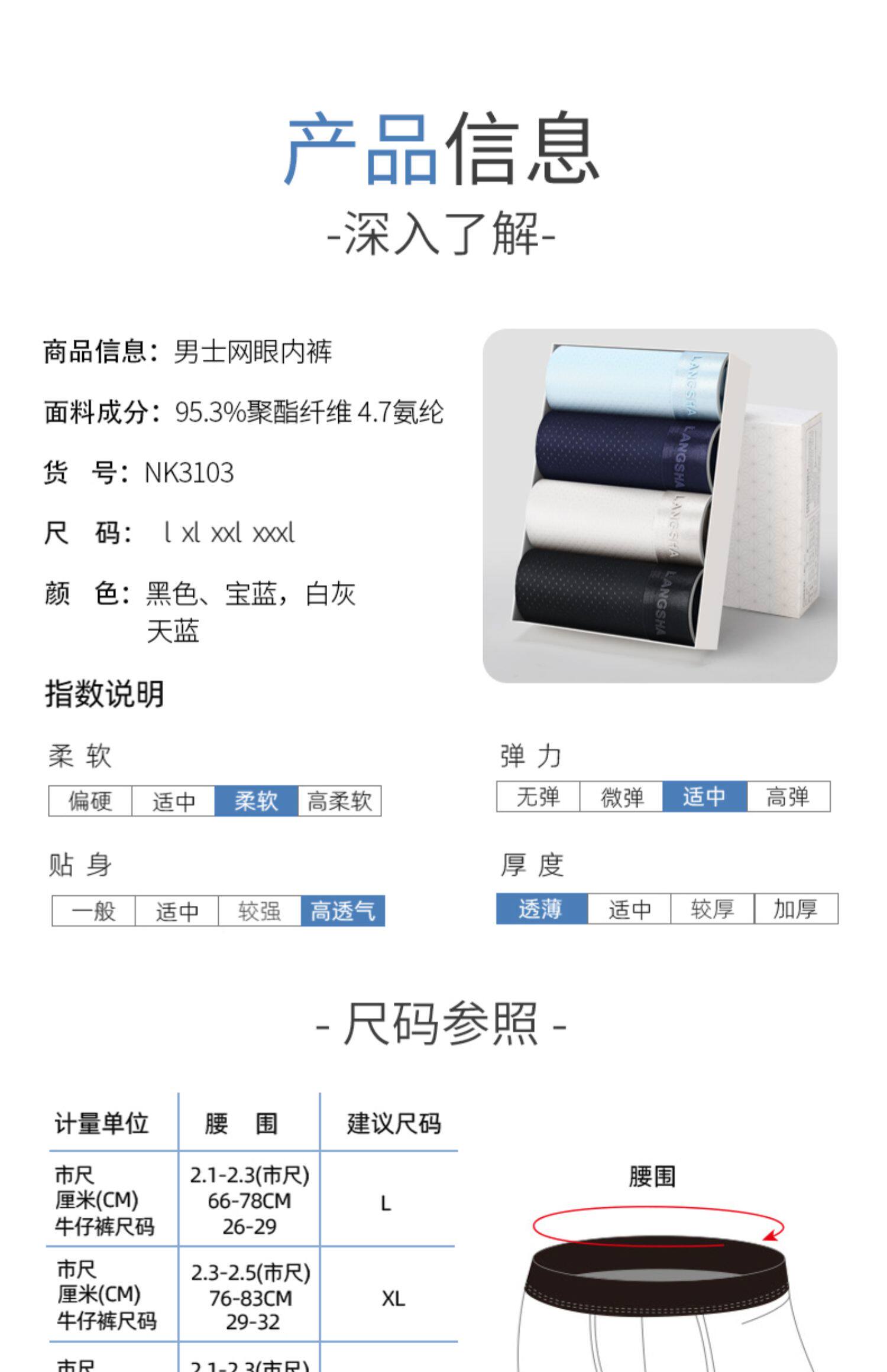 浪莎 Мужское шелковое нижнее белье, тонкие дышащие штаны, летние трусы
