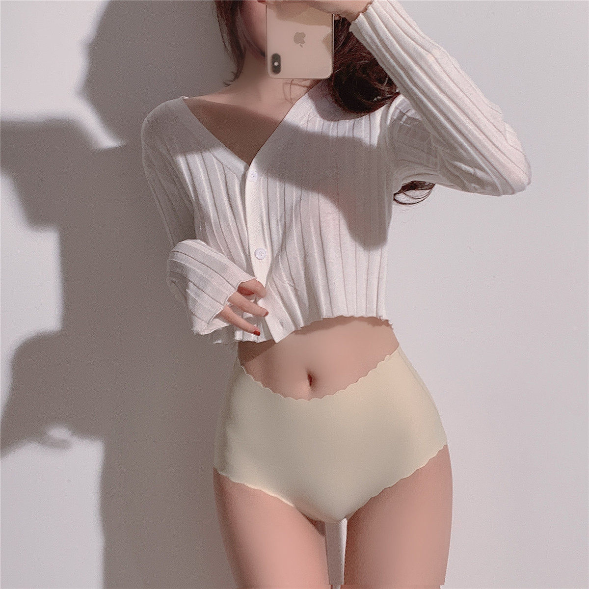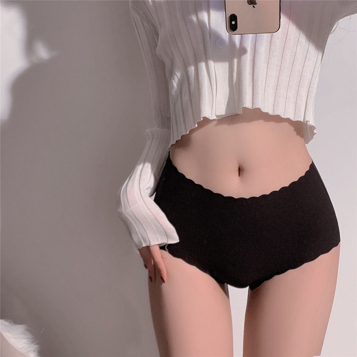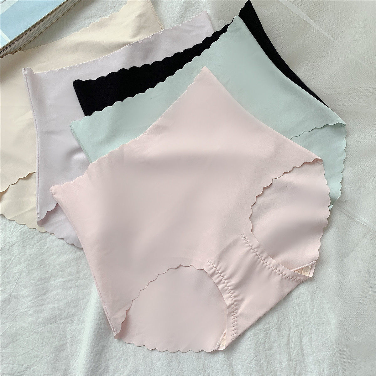 [4 БЕСПЛАТНАЯ ДОСТАВКА] XIAOMAMEN TAIST 0 Ощущение, без следа, середина высокая талия, легкие шелковые трусики для брюшной полости, свежий летний NK033