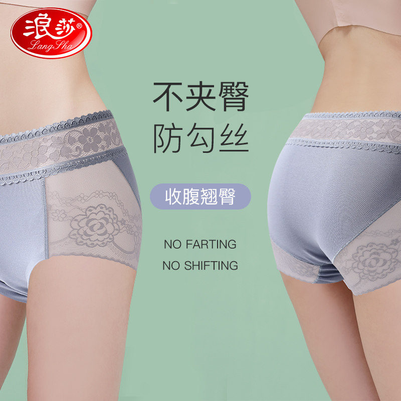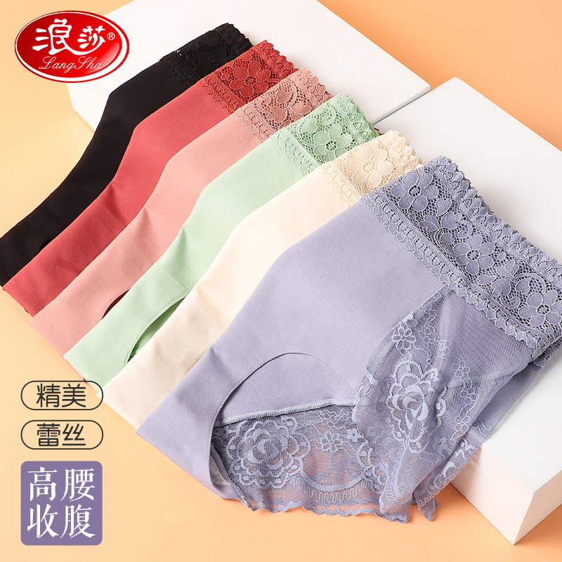 浪莎 Нижнее белье, кружевные сексуальные хлопковые штаны, антибактериальное летнее тонкое белье для коррекции формы бедер, хлопковый утягивающий пояс на талию, трусы, высокая талия