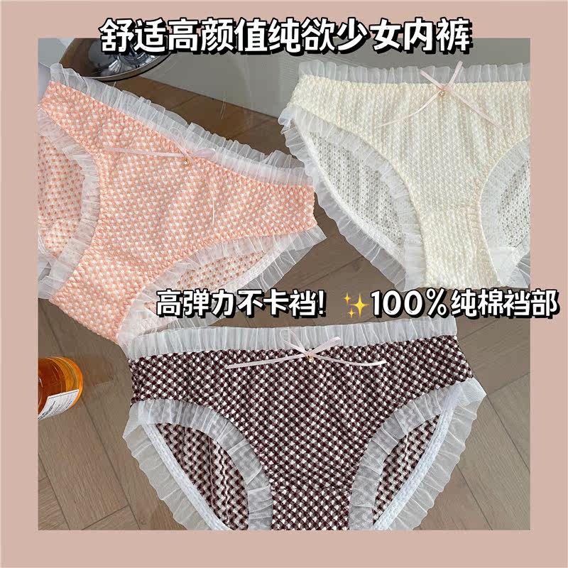 Милые кружевные эластичные хлопковые трусы, средняя посадка