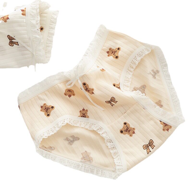 Мультяшные комфортные милые трусы, штаны, средняя посадка, с медвежатами, большой размер