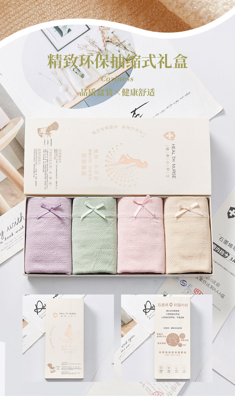 Японская стиль не -Trace 3.0 Jade Box Graphene Girl Panties 4 коробки с антибактериальным хлопковым внутренним промежности женские трусы женщин