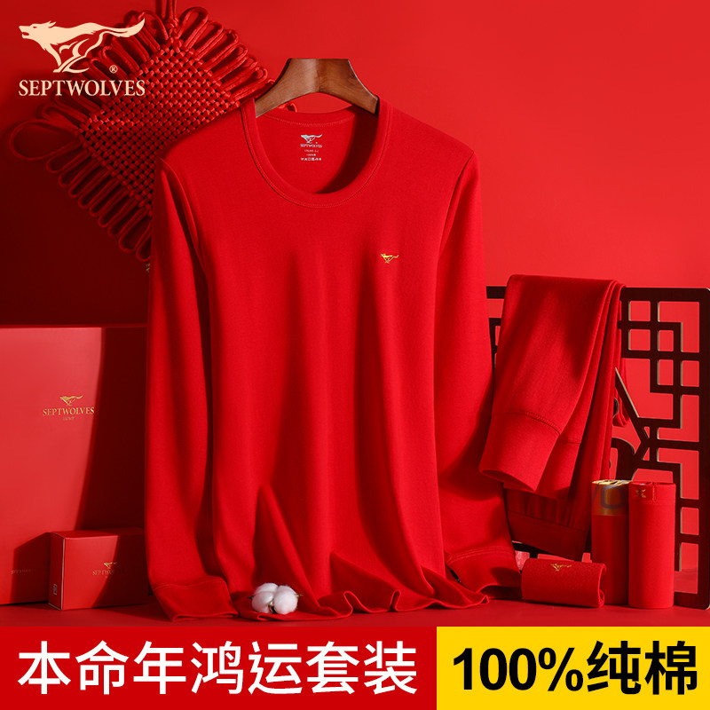 Septwolves, удерживающий тепло оберег на день рождения, нижнее белье, мужской хлопковый комплект, красное термобелье, подарок на день рождения