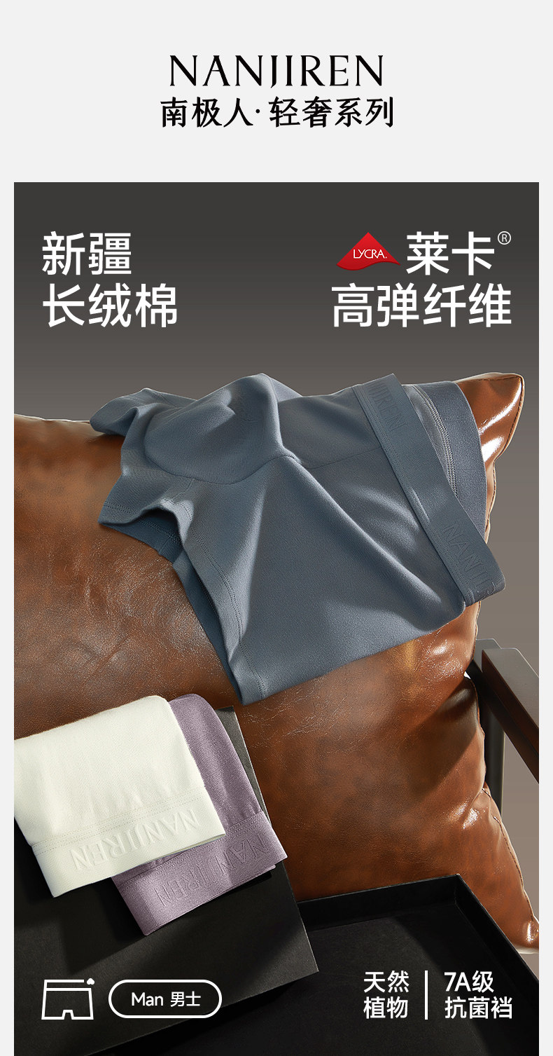 南极人 Мужское нижнее белье, шорты-боксеры из чистого хлопка для мальчиков, антибактериальные мужские шорты-боксеры, новый мужской стиль 2025 года.