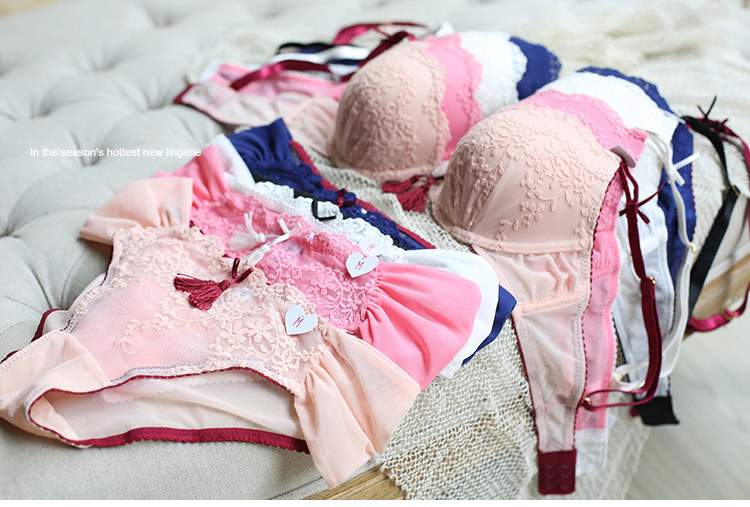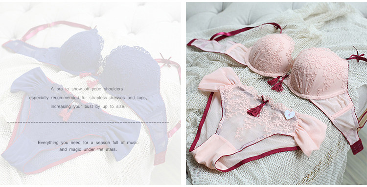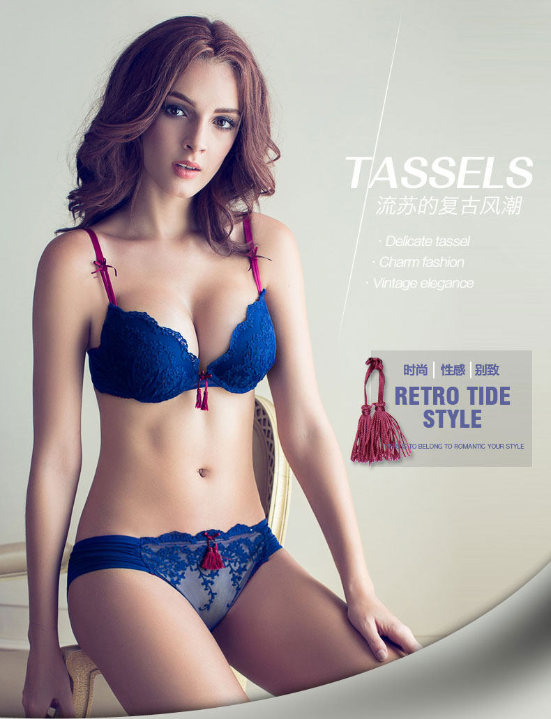 Сексуальный бюстгалтер, поддерживающий комплект, милое нижнее белье с кисточками, европейский стиль, с вышивкой