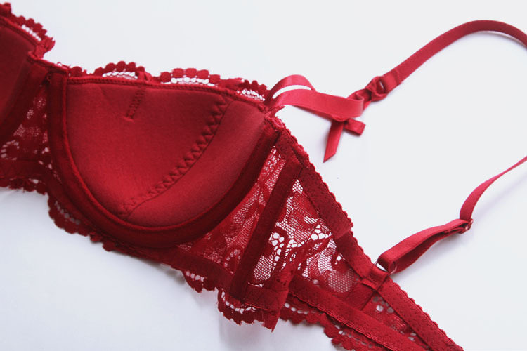 Кружевной тонкий сексуальный бюстгальтер пуш-ап, комплект, бюстгалтер, красное зимнее нижнее белье