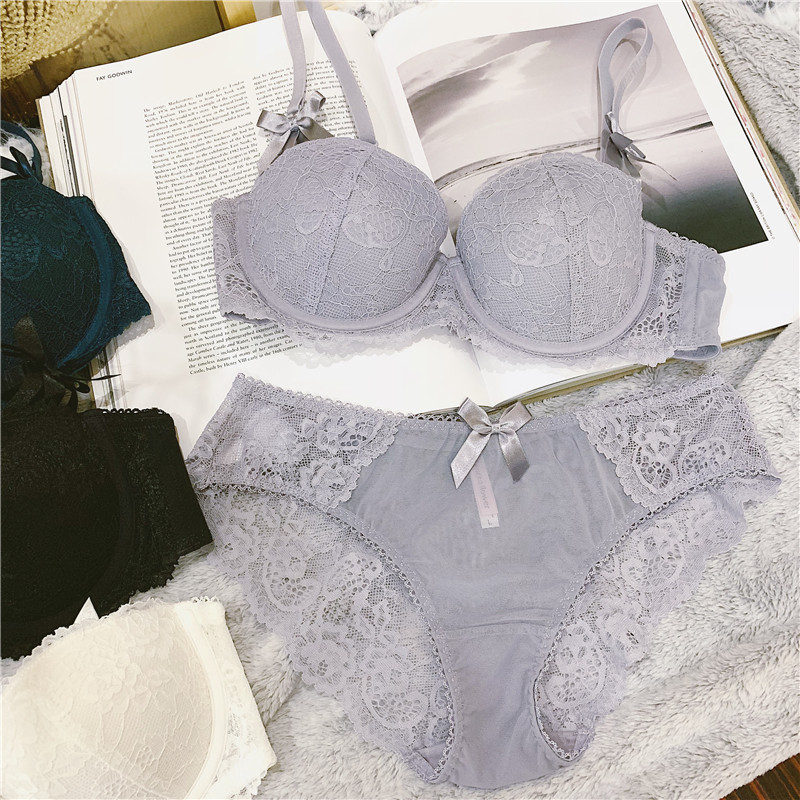 Милый бюстгальтер пуш-ап, кружевное сексуальное нижнее белье для школьников и студентов, штаны, бюстгалтер