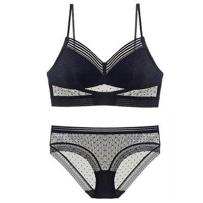 Бюстгалтер, комплект, бюстгальтер без косточек, нижнее белье, кружевные штаны, французский стиль, с открытой спиной, красивая спина, тонкий ремешок