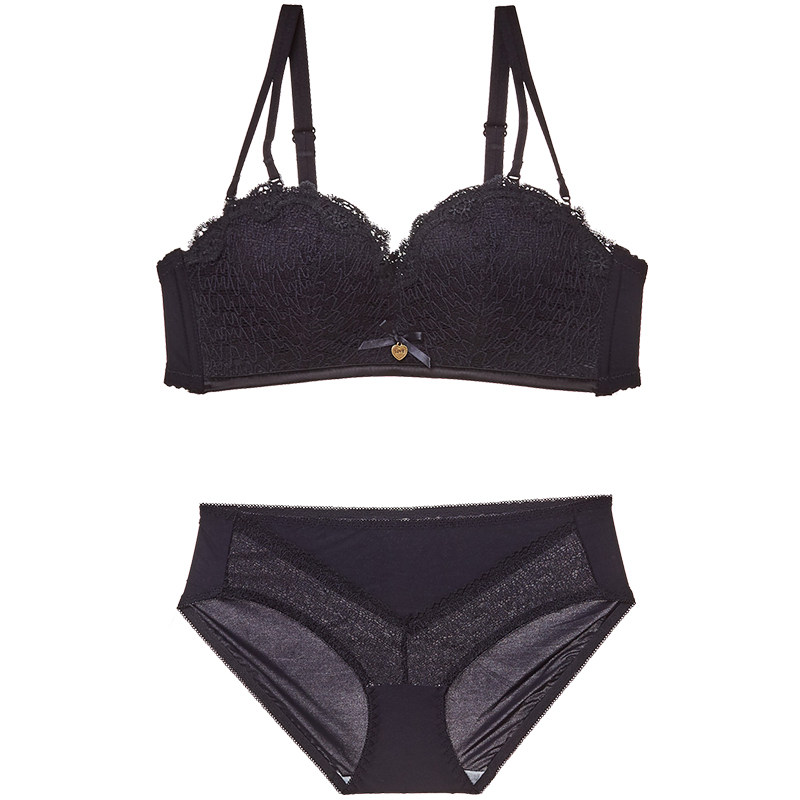 Кружевной сексуальный бюстгальтер без косточек, бюстгальтер пуш-ап, нижнее белье, комплект, бюстгалтер, черные штаны, увеличенная толщина