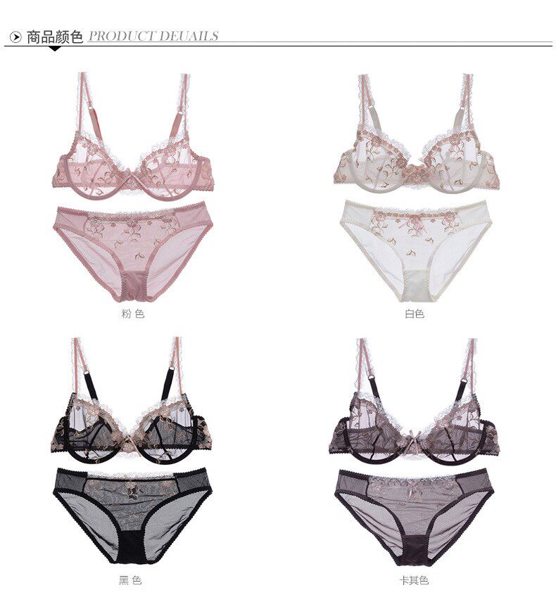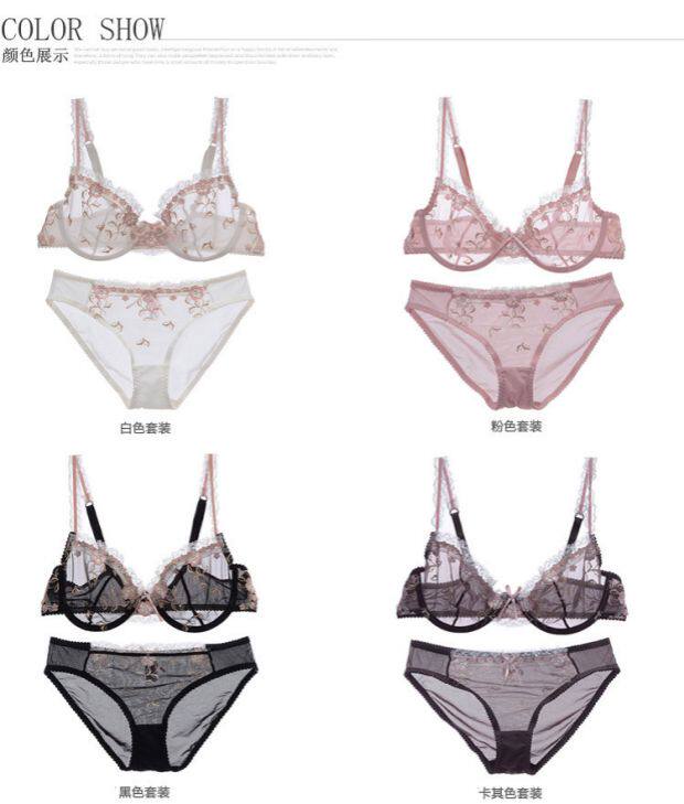Сексуальное ультратонкее тонкое поролоновое прозрачное нижнее белье, кружевной бюстгалтер, комплект, с вышивкой, большой размер