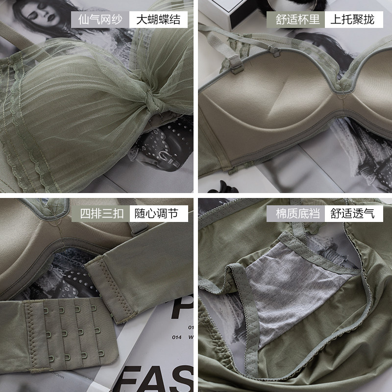 Кружевной бюстгальтер без косточек, нижнее белье, бюстгальтер пуш-ап, тонкие штаны, сексуальный зеленый бюстгалтер, комплект