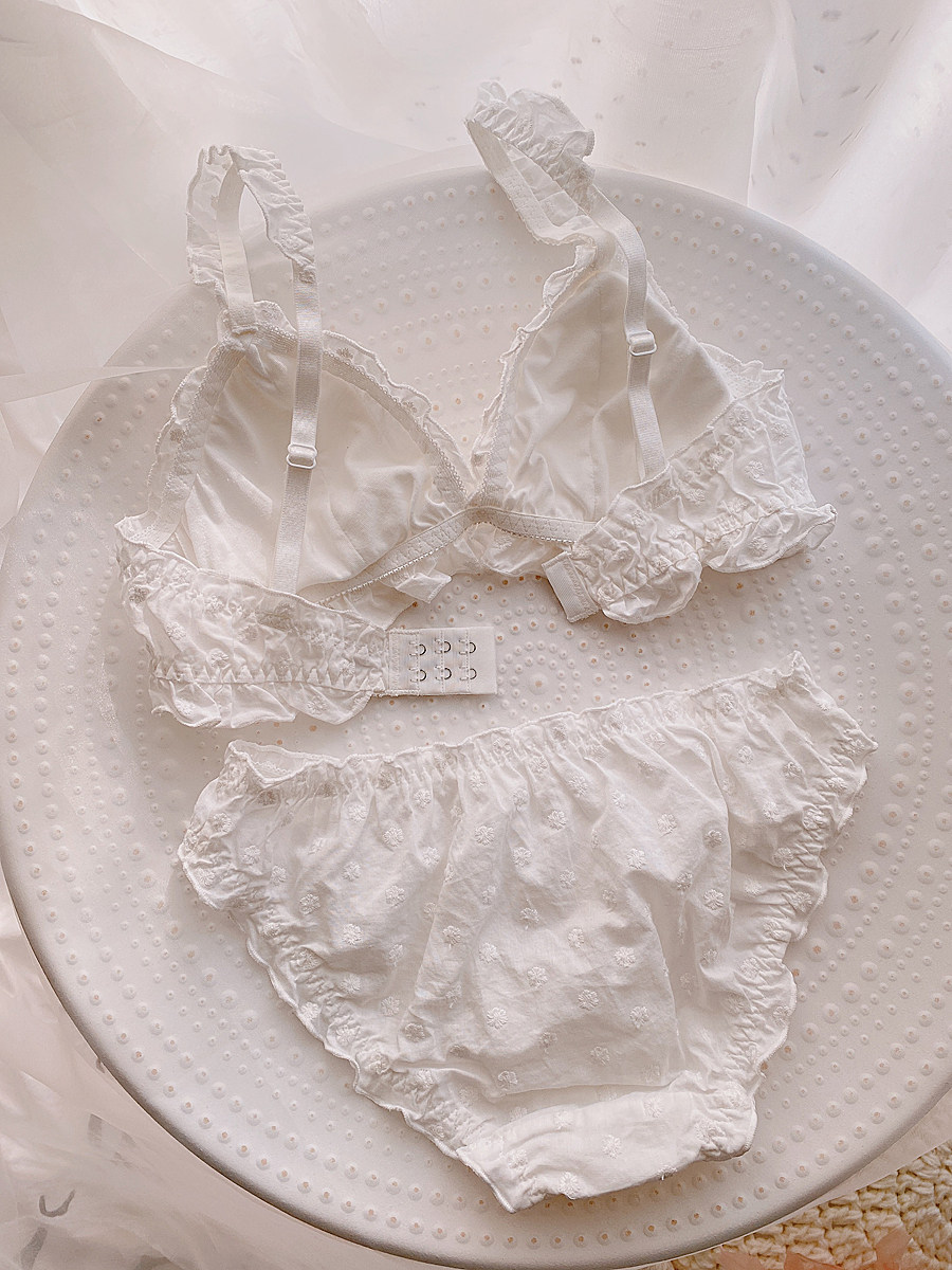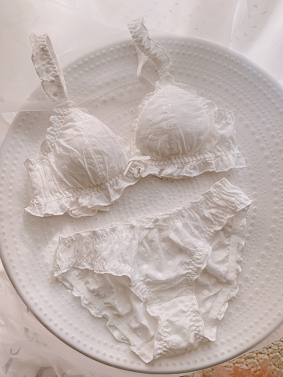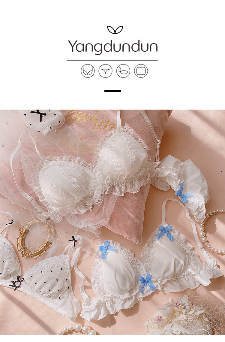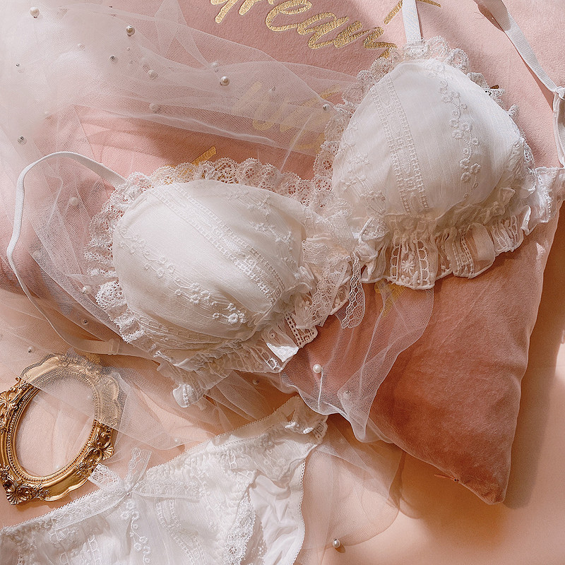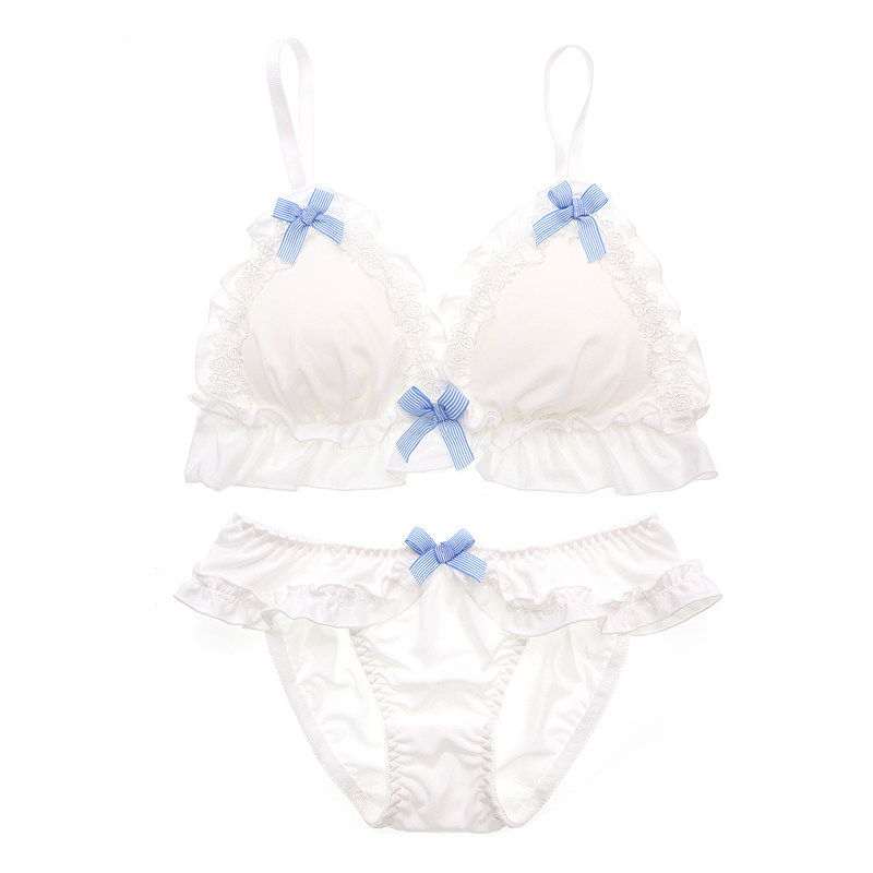 Милый японский бюстгальтер без косточек для невесты, комплект, белое нижнее белье с бантиком