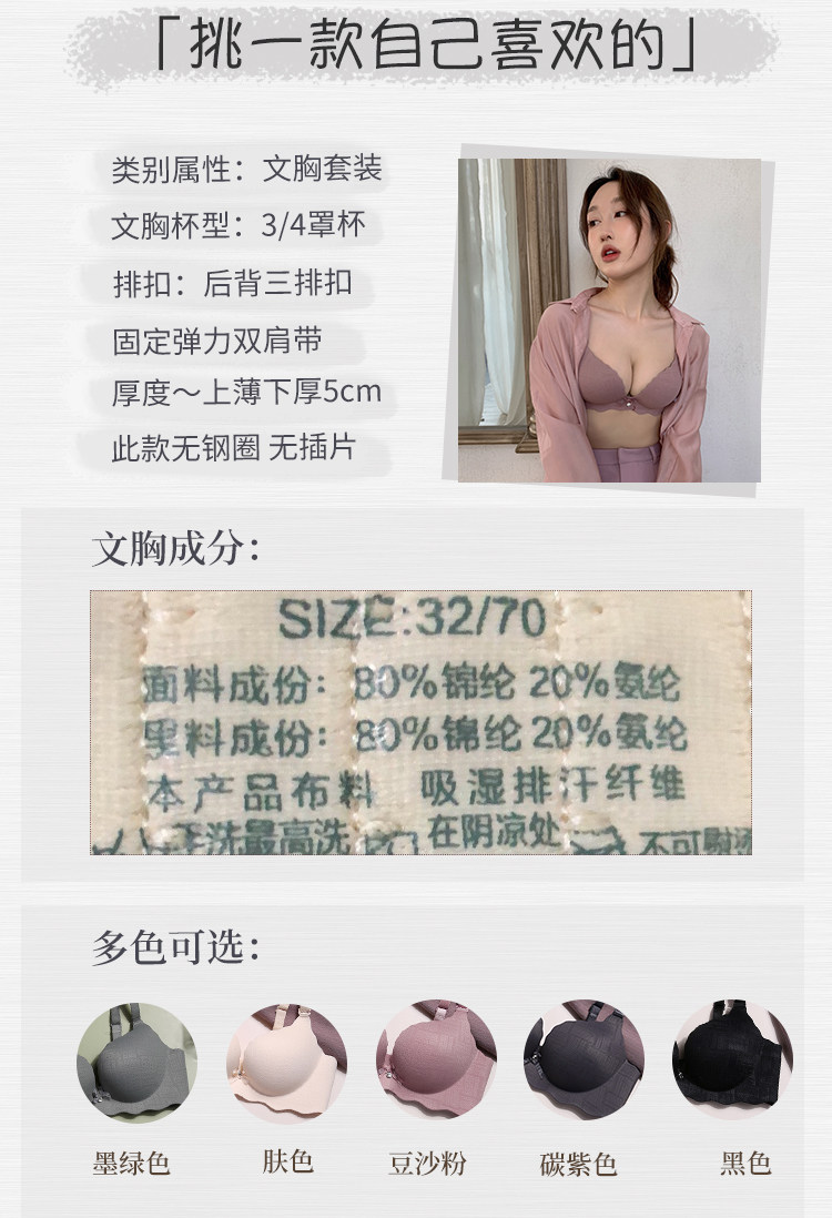 Нижнее белье, бюстгальтер пуш-ап, бюстгальтер без косточек, бюстгалтер, комплект, увеличенная толщина