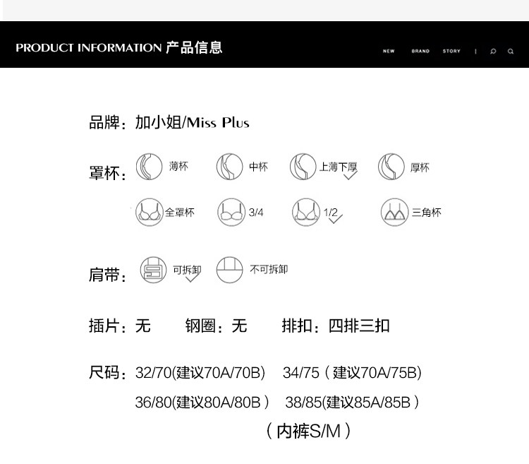 | Размер: | 32A(70A), 32B(70B), 34A(75A), 34B(75B), 36A(80A), 36B(80B), 38A(85A), 38B(85B) |