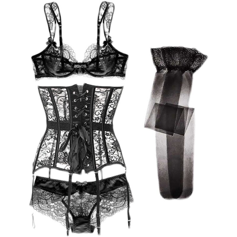 Ультратонкее прозрачное сексуальное нижнее белье, сексуальный комплект, бюстгалтер, корсет, колготки, 4 шт