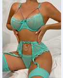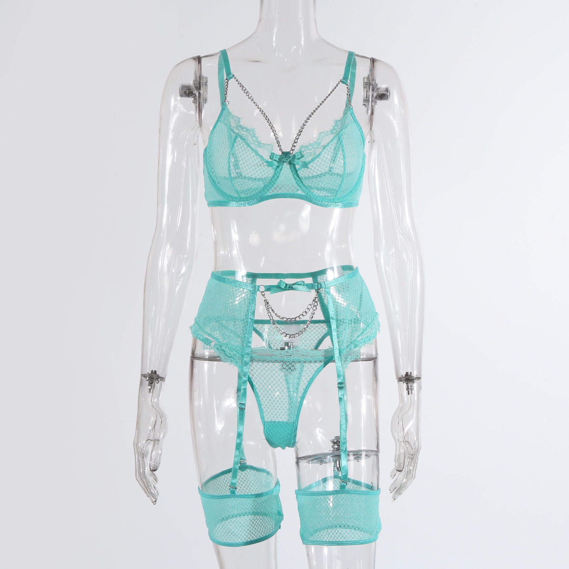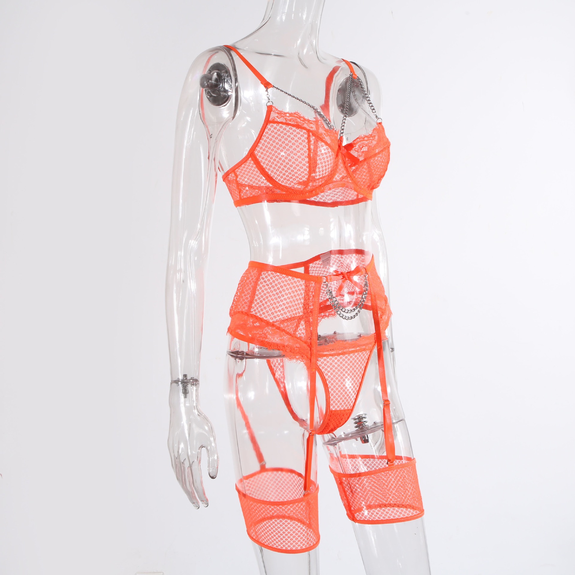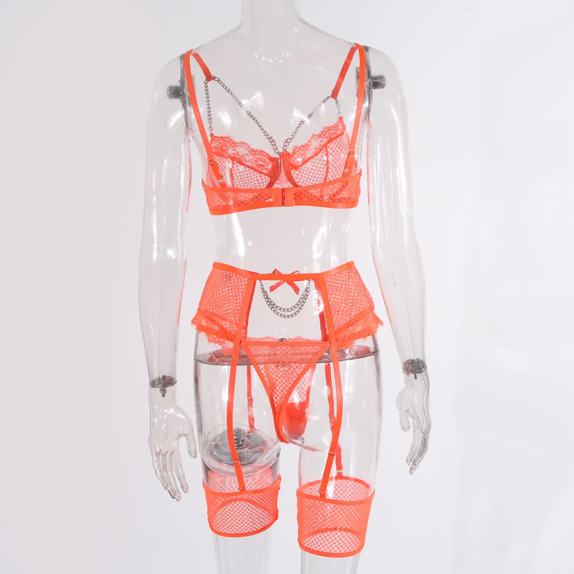 Кружевной дизайнерский бюстгалтер со стальными косточками, металлический комплект, дизайнерская цепь, 4 предмета