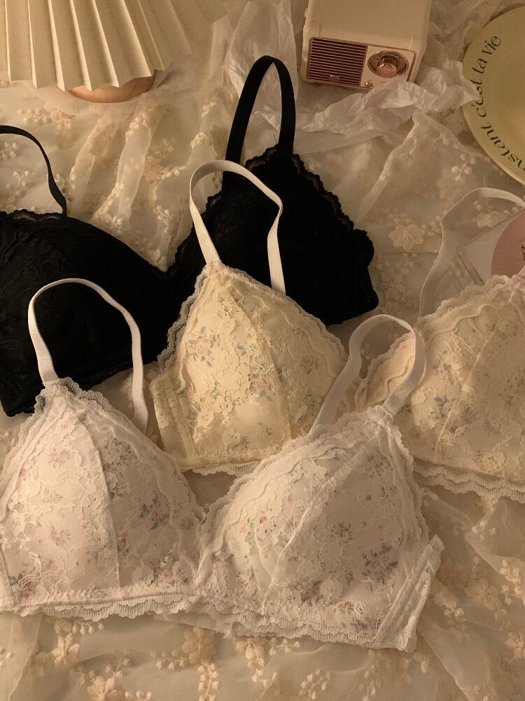 Бюстгалтер, милый комплект, кружевной бюстгальтер пуш-ап, бюстгальтер без косточек, нижнее белье для кормящих грудью, цветочный принт, средняя посадка