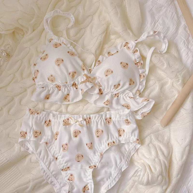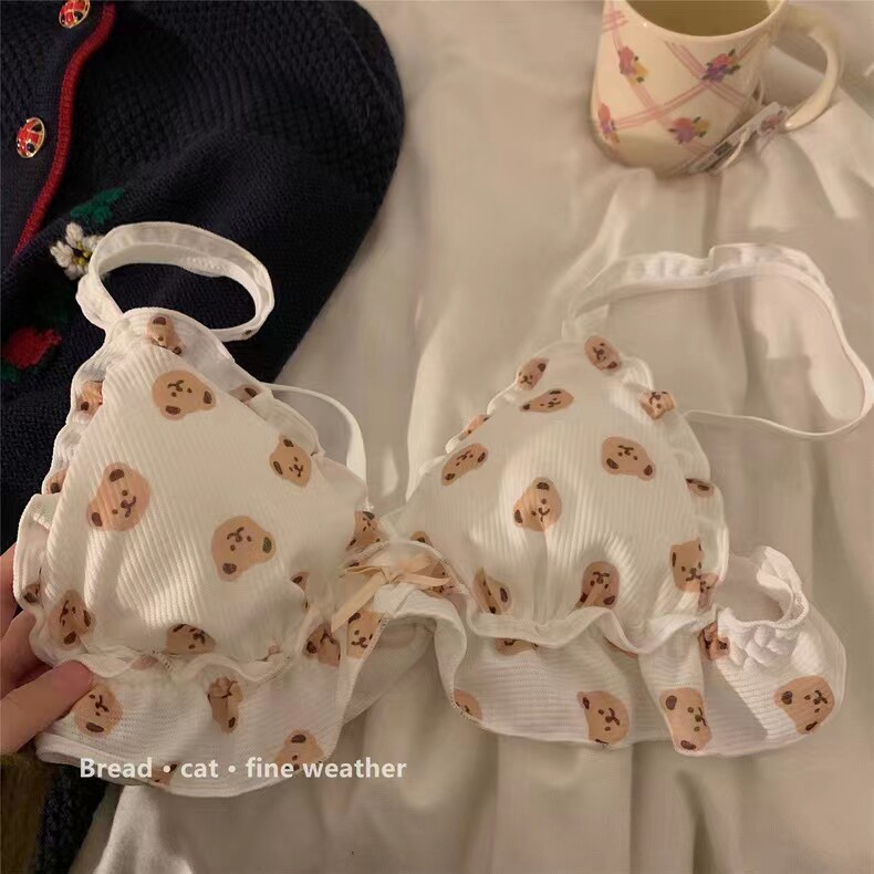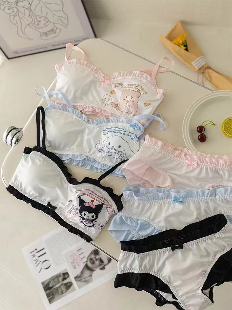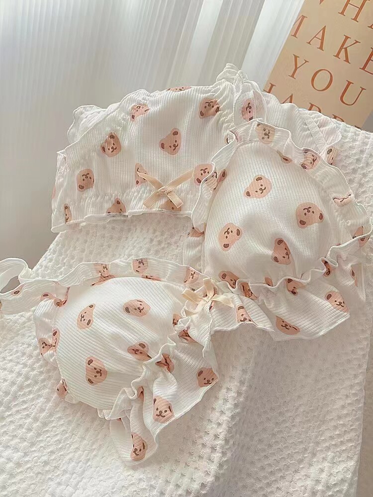 Японское мультяшное милое кружевное нижнее белье для школьников и студентов, тонкий бюстгальтер без косточек, комфортный комплект