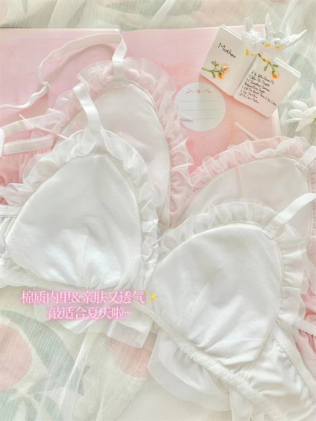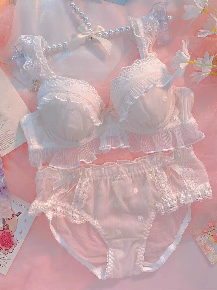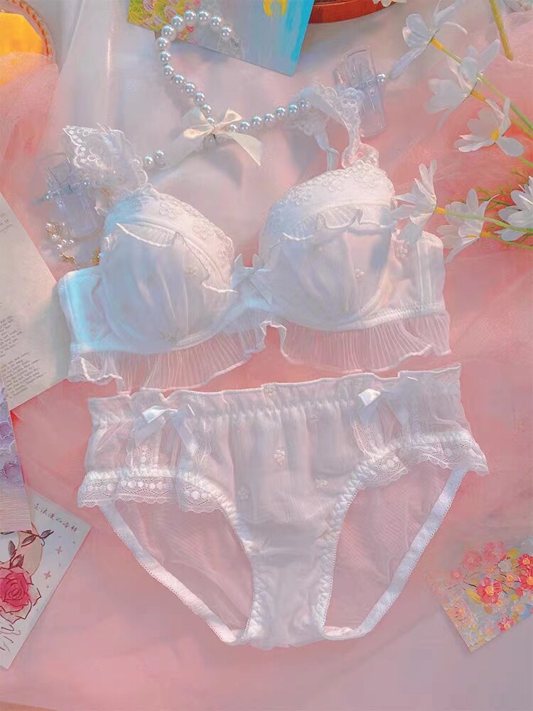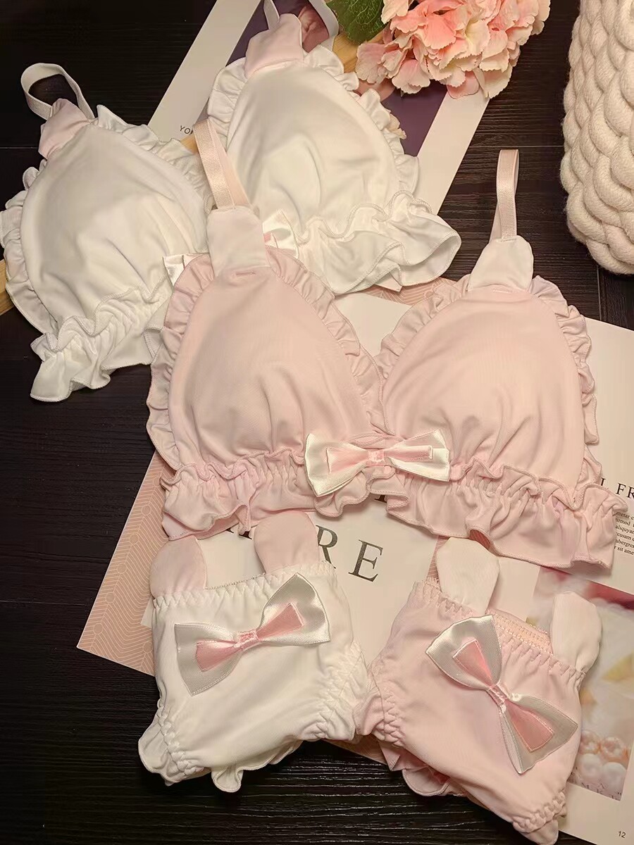 Японское мультяшное милое кружевное нижнее белье для школьников и студентов, тонкий бюстгальтер без косточек, комфортный комплект